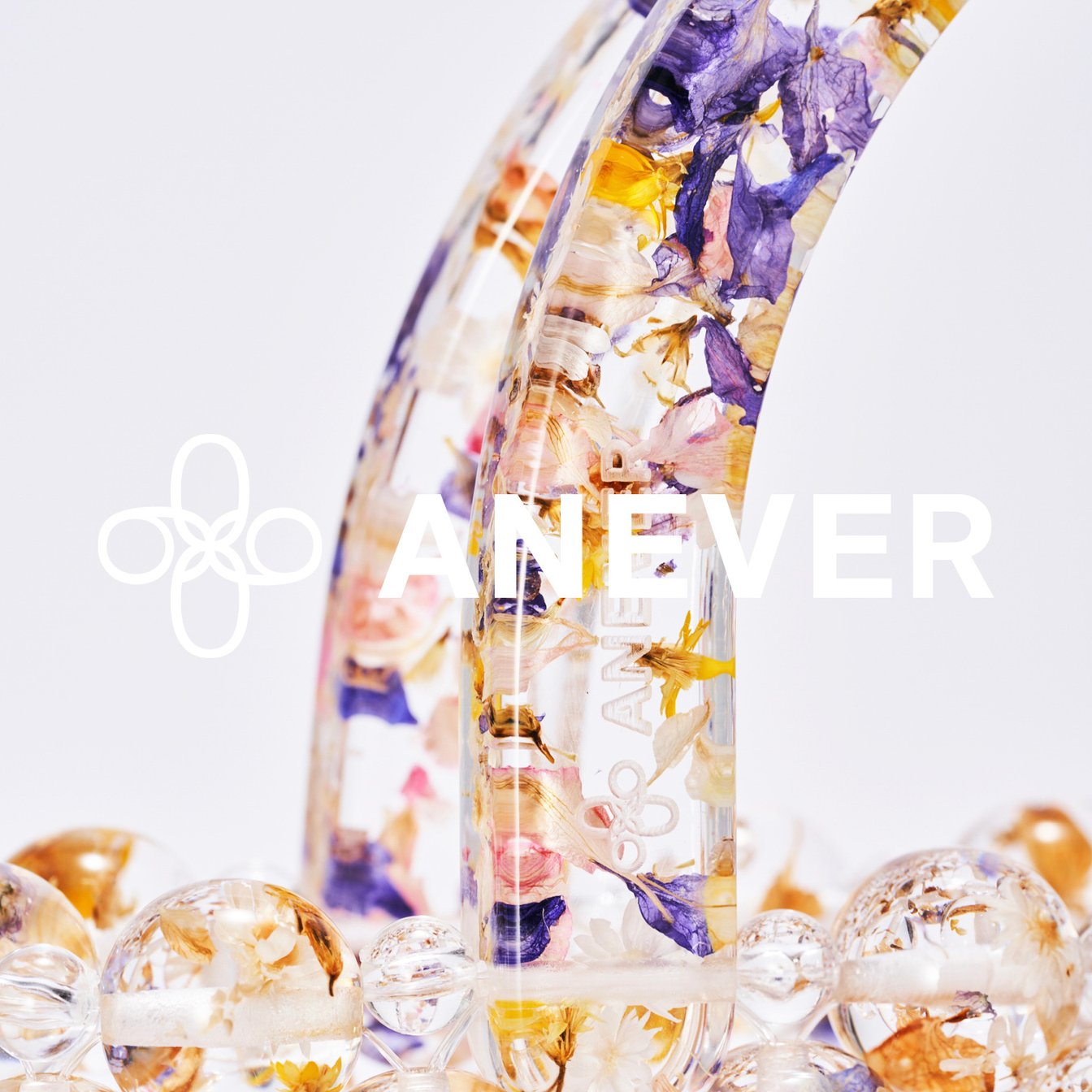 主役となるのは花のアクセサリーパーツ。アクリル樹脂のシリーズは、これまでもアンリアレイジからiPhoneケースなどが販売され人気を得てきましたが、「アンエバー」というブランドに昇華することで展開を拡大。唯一無二のアクセサリーコレクションを提案します。