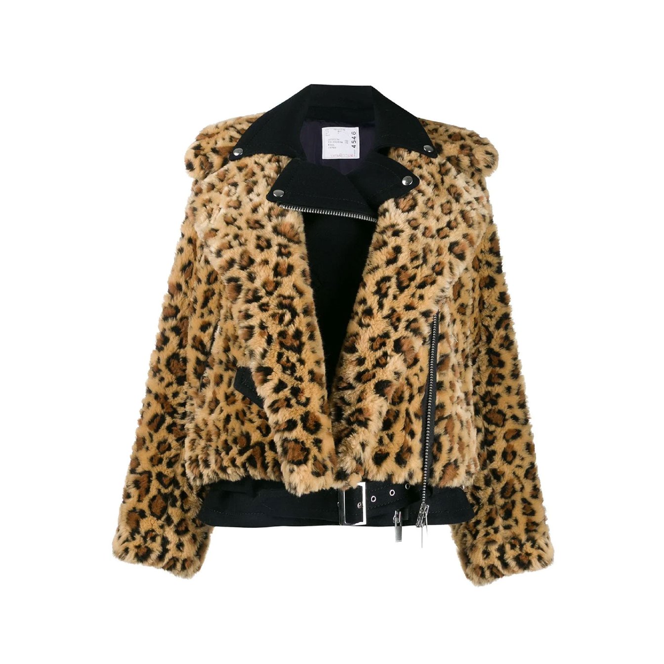 レイヤードデザインのボリューミーなレオパードジャケットは「サカイ(sacai)」から。ファーとウールがドッキングしたユニークなデザインなので、個性的な一着を探している人にオススメ。