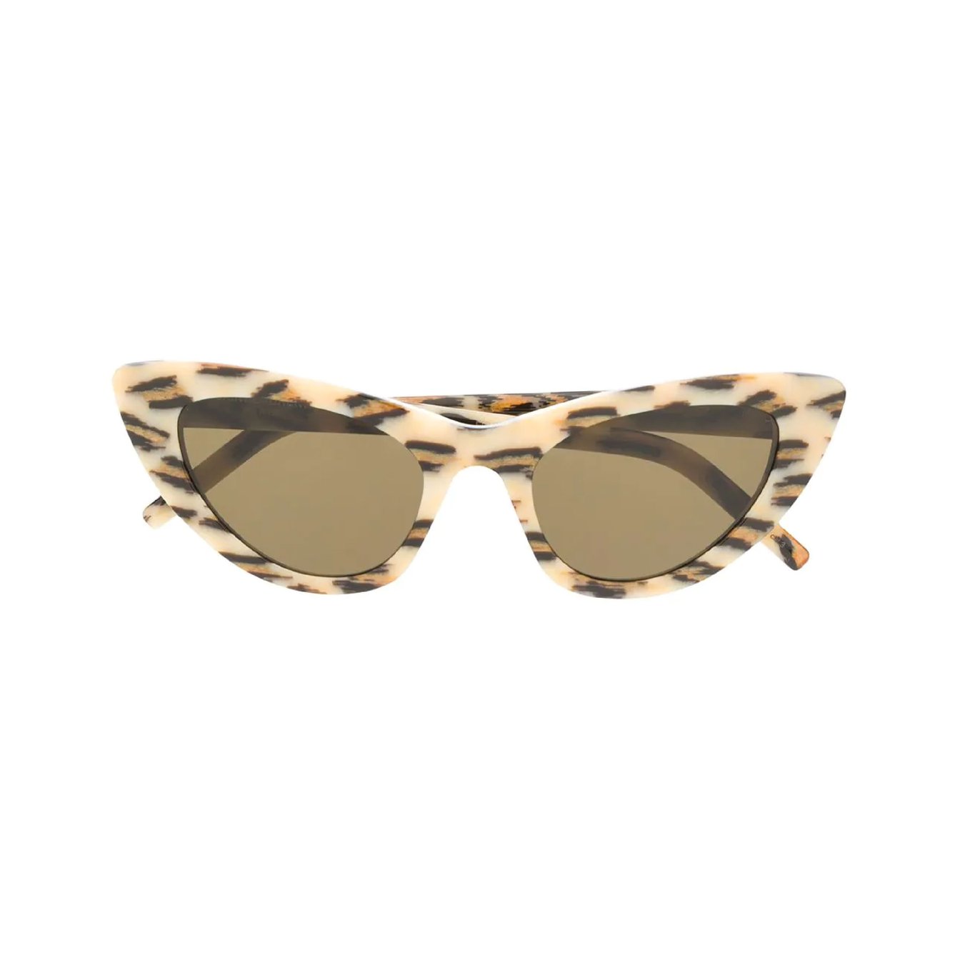 永遠の憧れ、キャットアイのサングラスはアニマルパターンとの相性抜群。主張が強くなりがちなレオパードも「サンローラン(SAINT LAUREN)」の手にかかればこんなに上品に。