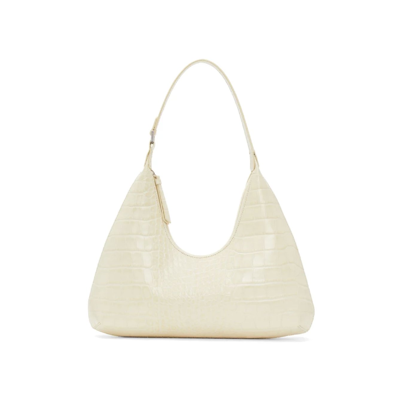 アップカミングなフットウェア&ハンドバッグブランド「バイ ファー(BY FAR)」によるクロコ型押しレザーのショルダーバッグ。リッチになりすぎるクロコ型も抜け感あるオフホワイトと組み合わせれば、今っぽく洗練された雰囲気に。