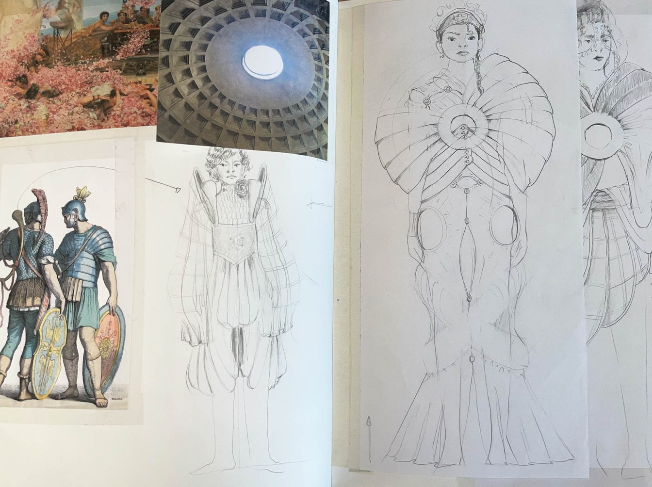 クラスメイトJoeのperiodproject 古代文明をリファレンスにデザイン画を書く課題