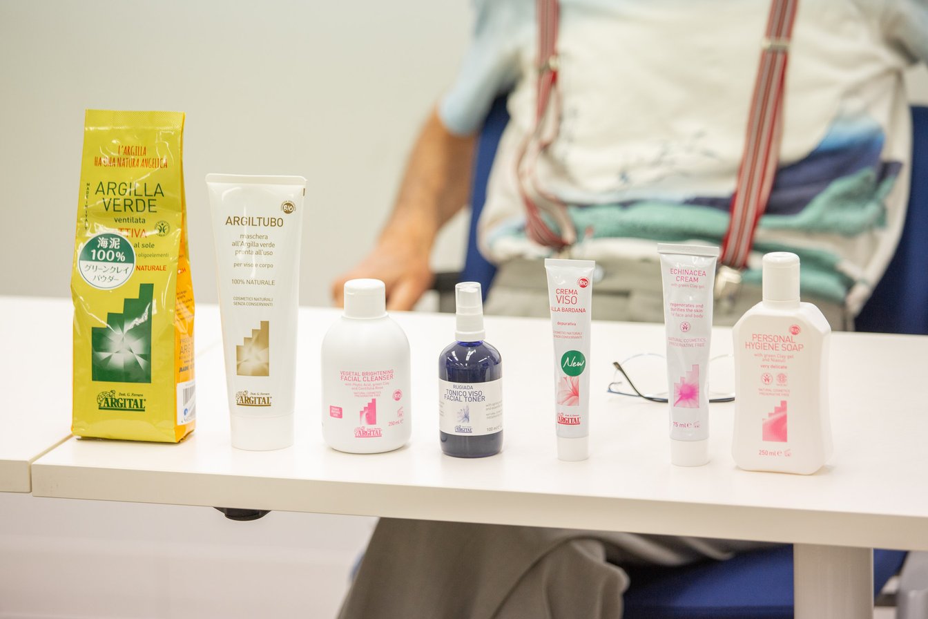 そうですね。アルジタル誕生の背景にはこうした私の思いや研究が込められています。アルジタルは、イタリア・シチリア島の恵み豊かな海泥「グリーンクレイ」から生まれています。人気商品「グリーンクレイパウダー アクティブ」(500g 3300円、25g 495円)などを擁しますが、「クレイは天使のような特性を持っている」と説明しています。これは先ほどの自然と人間と宇宙とのつながりから生まれた言葉です。私たちが今生きている世界は物質的な世界で、こうしたマテリアリズム(物質主義)を極端に表現したのがテクノロジーです。世の中はテクノロジーにあふれていますが、その反動で自然由来のアイテムを求めている人も増えているのではないでしょうか。心に響く経験など、物理的な商品ではないところこそ、求められていると思います。
