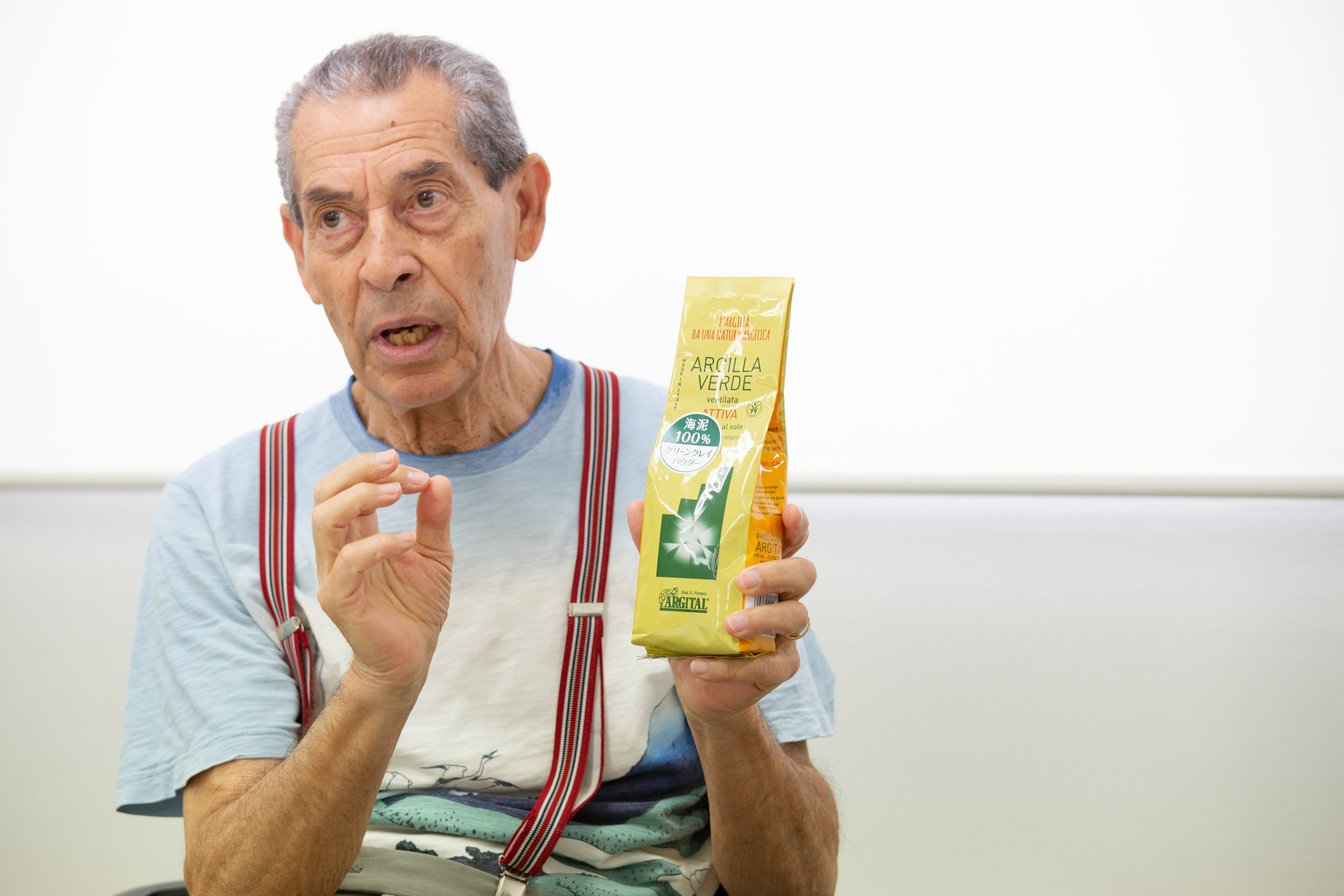 「グリーンクレイパウダー アクティブ」について語るフェラーロ博士