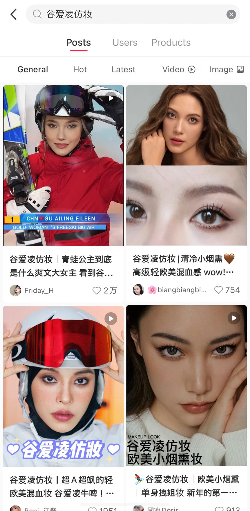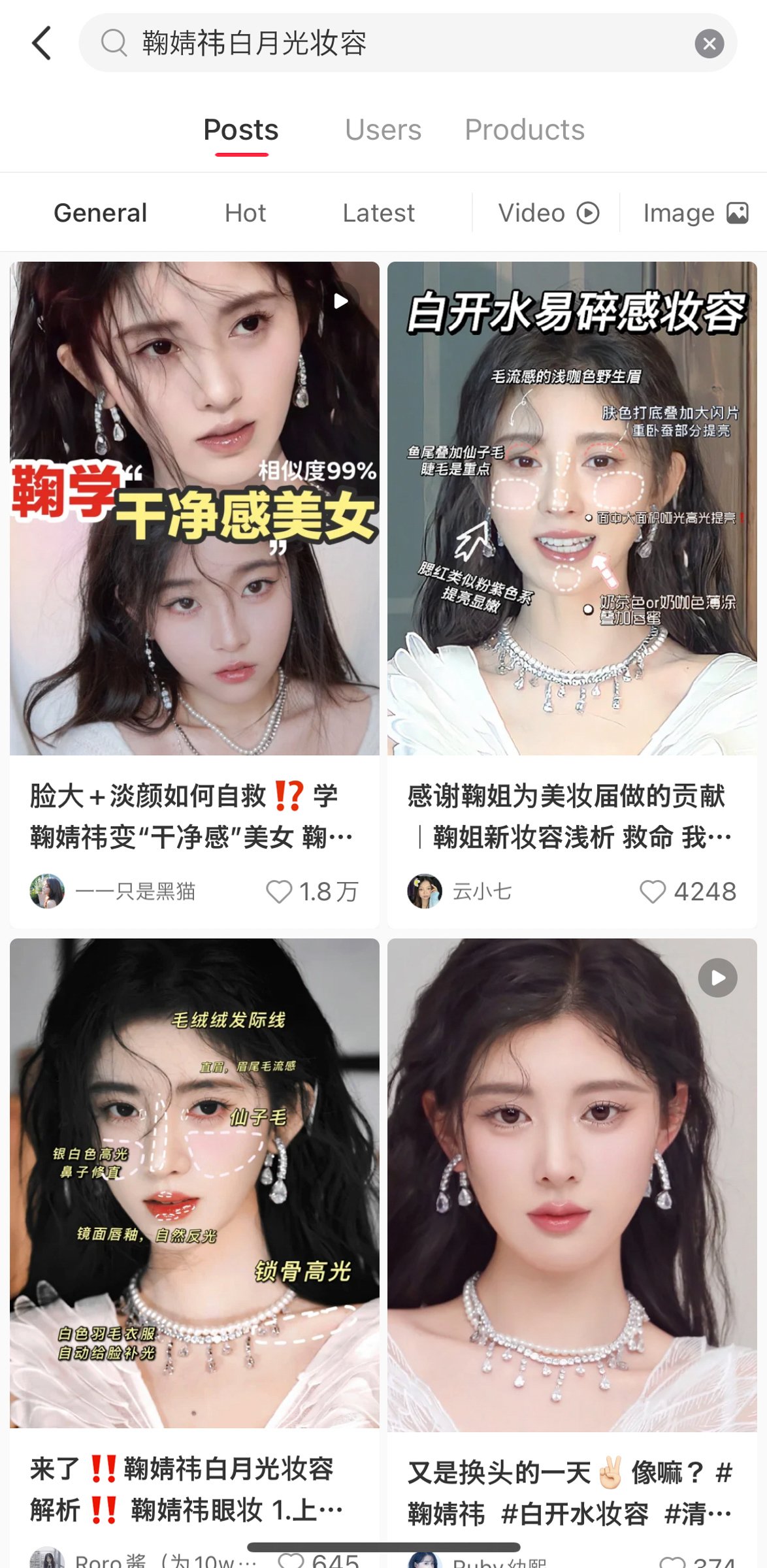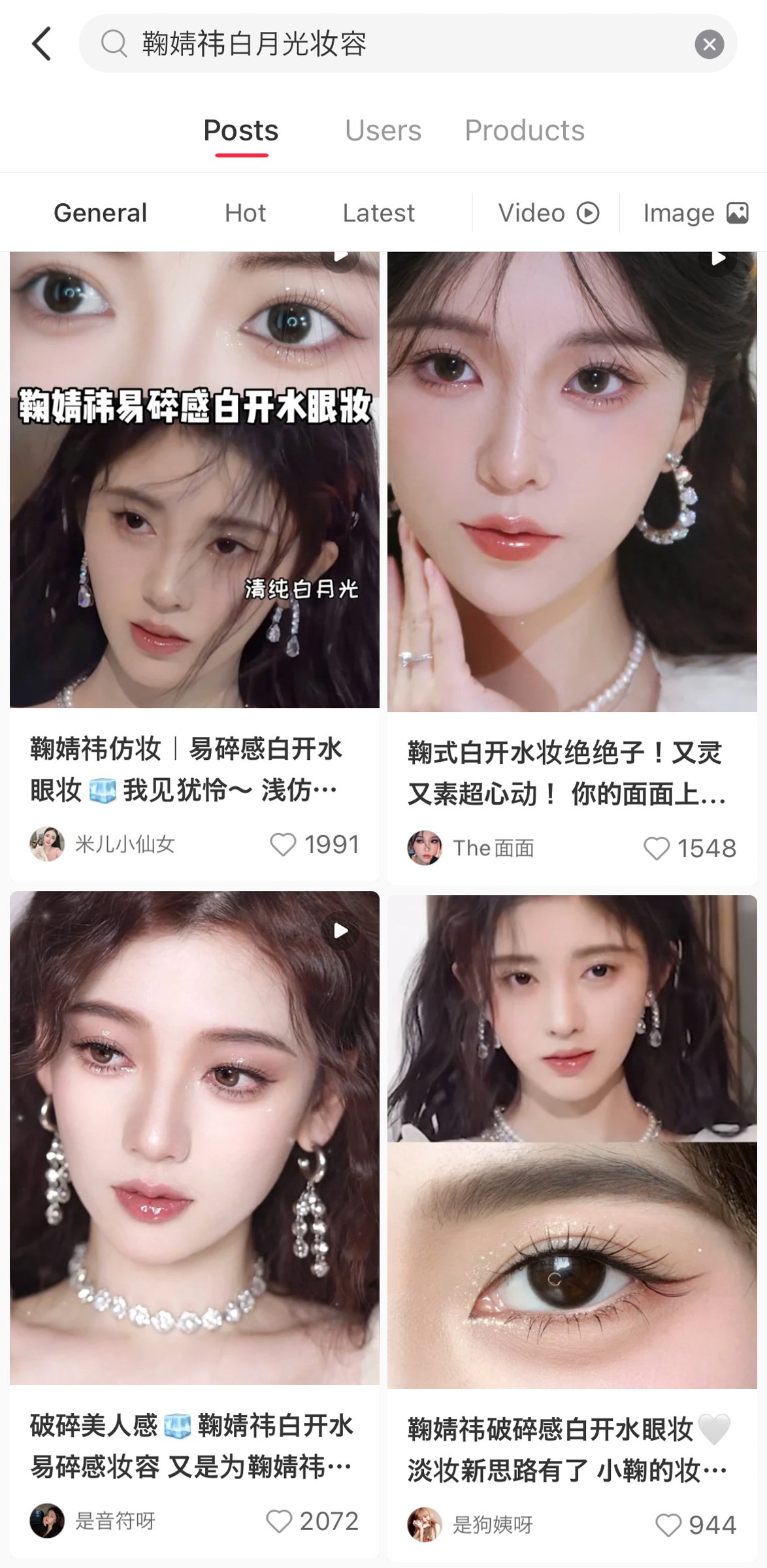 鞠婧禕(ジュー・ジンイー)を真似するメイク(中国のSNSアプリ・REDの検索画面から)