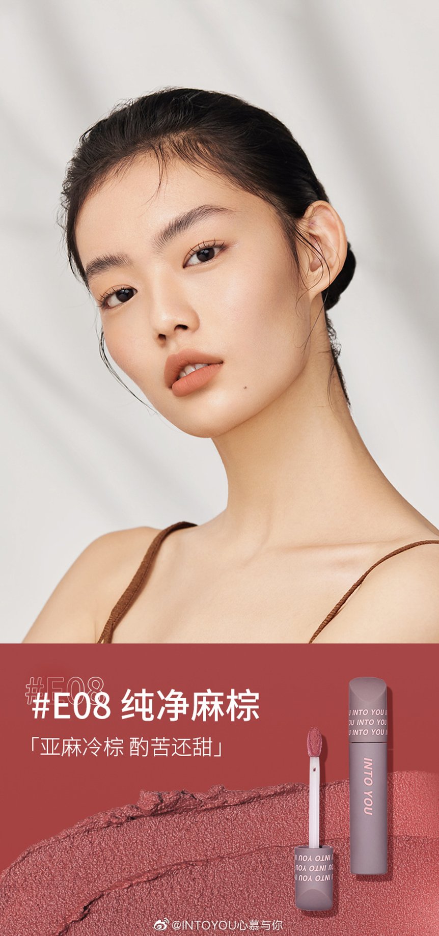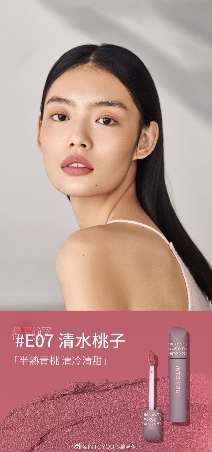 新作コスメでも、こうしたトレンドを受けて、淡いブラウンやコーラルカラーが数多く登場。「INTO YOU」の人気マットリップ「指尖哑光唇釉」の新色は、低彩度のピンクやブラウンなど流行のトーンを取り入れています。「Uhue」の新作リップ「浮乐园镜面水光唇釉」は潤いあふれるツヤ感と低彩度カラーが今っぽい口元に。