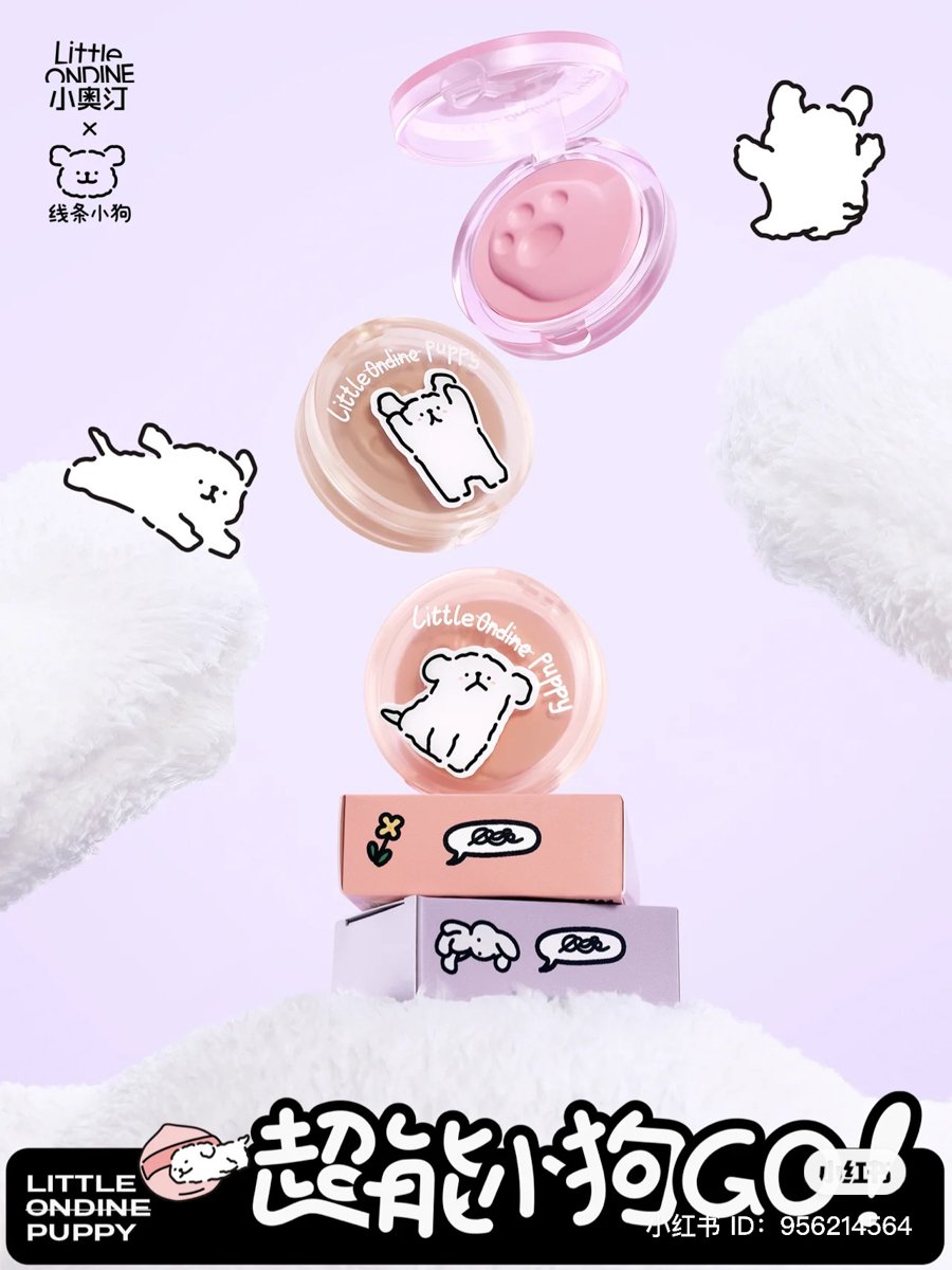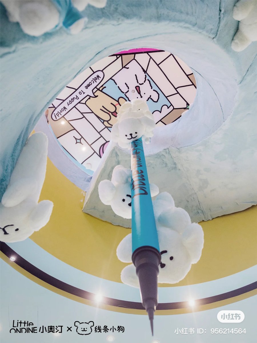 キャラクターコラボの多い中国コスメですが、最近は動物キャラクターとのコラボが人気です。「リトルオンディーヌ(Little Ondine 小奥汀)」は、韓国発のキャラクター、マルチーズ(線條小狗)とコラボ。肉球の模様がついたバームチークは使うのがもったいなくなる可愛さです。上海で開催したポップアップイベントでは、壁一面にマルチーズが集まった空間も話題に。