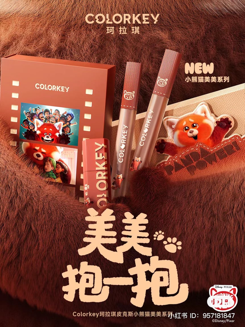 「ピンクベアー(PinkBear皮可熊)」は韓国の子ども向けアニメ「ポンポンポロロ」のキャラクター、ビーバーの女の子ルーピー(Loopy)とコラボ。ルーピーのようなピンクが可愛い“泥リップ”など、キュートなアイテムを展開。「カラーキー(COLORKEY 珂拉琪)」はディズニー映画「私ときどきレッサーパンダ」とコラボ。パッケージにはレッサーパンダのイラストや肉球模様が施され、コレクションしたくなる可愛さです。