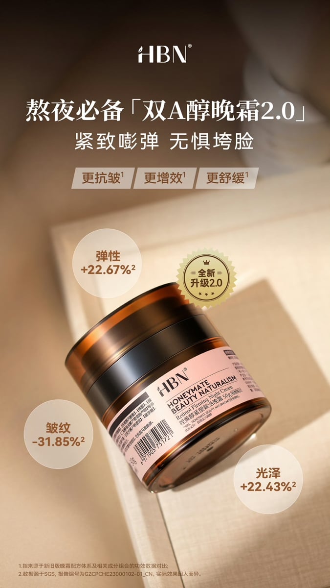 「HBN」ダブルAナイトクリーム2.0:Weibo公式アカウントより