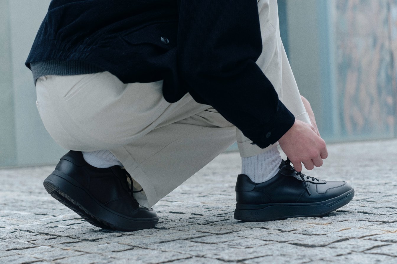 しかし今、そのイメージが大きな変革を遂げようとしている。きっかけは、今年1月にイタリア・フィレンツェで開催された世界最大級のメンズファッション見本市「ピッティ・イマージネ・ウオモ(Pitti Immagine Uomo)」への初出展だ。そこで提示されたのは、シューズの内部構造を解体してその機能性を可視化する展示手法と、現代のストリートやモードにも共鳴する洗練されたヴィジュアル。世界のバイヤーやメディアが注目したのは、ウェルビーイングへの意識が高まる現代における、クラシックなレザーシューズに代わる「合理的で適切な新しい選択肢」としての姿だった。