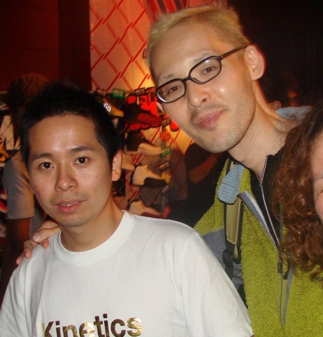 体調が悪かったという2007年の本明氏の写真。写真左はアトモスディレクターの小島奉文氏。