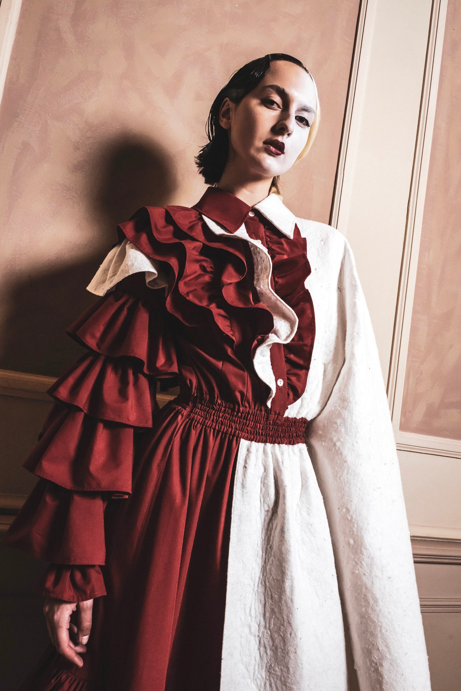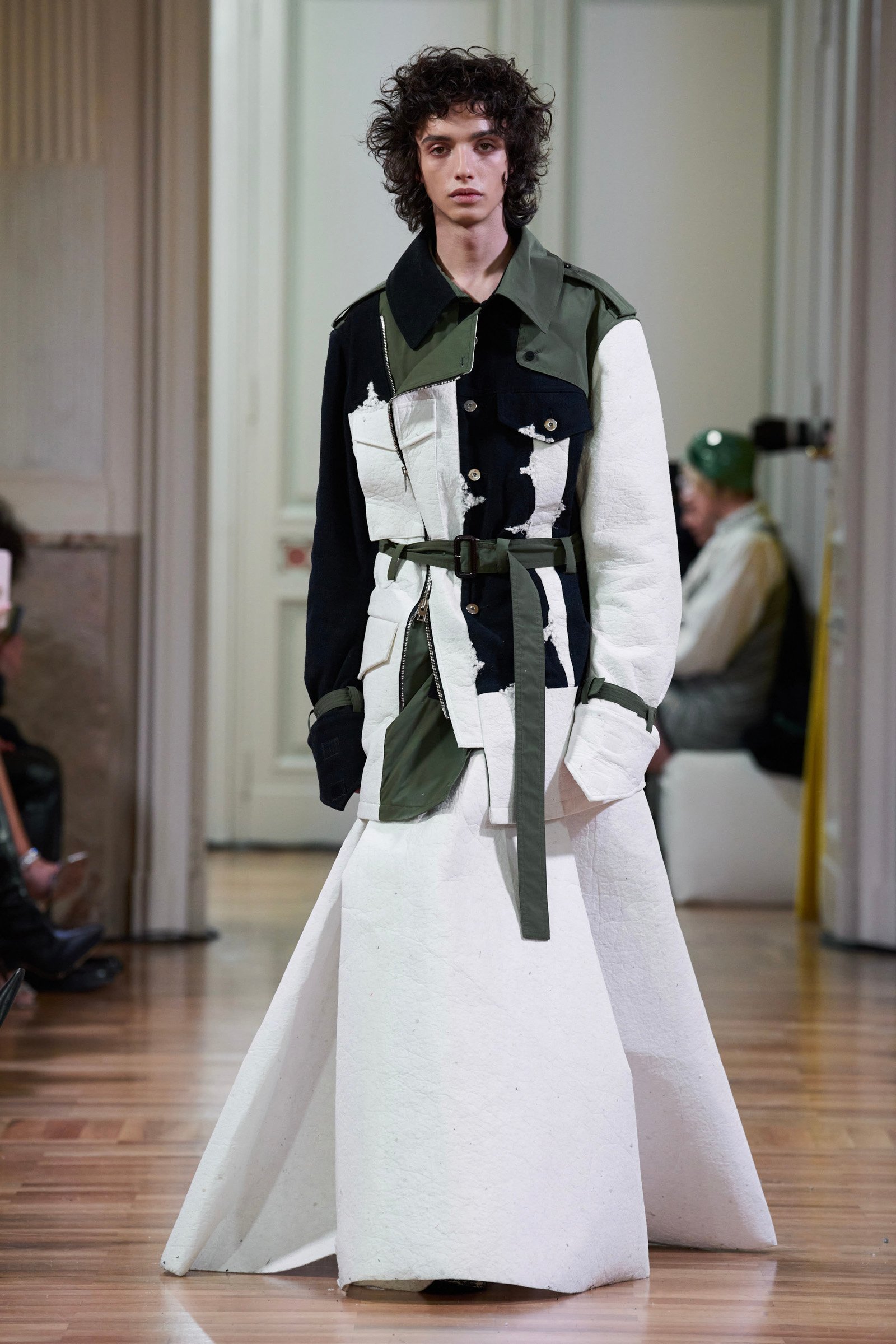 アツシ ナカシマがミラノでコレクションを発表するのは、2020年春夏以来3年半ぶり。中島自身の健康上の問題をきっかけに、環境問題を意識するようになり、同時にコレクション発表を行う行為自体が服の大量廃棄など環境破壊につながっているのではと考えるようになったという。そこで同氏は、自身のブランドと併行し、ITコンサルティングなどを行うKeepAliveと共同で「サーキュラリティ(Circularity)」プロジェクトを立ち上げ。再生可能素材を使ったデザイン性の高い服を作ることで、新たなファッションの楽しみ方を体験できるような、「循環性」を持ったプロジェクトを目指すとしている。