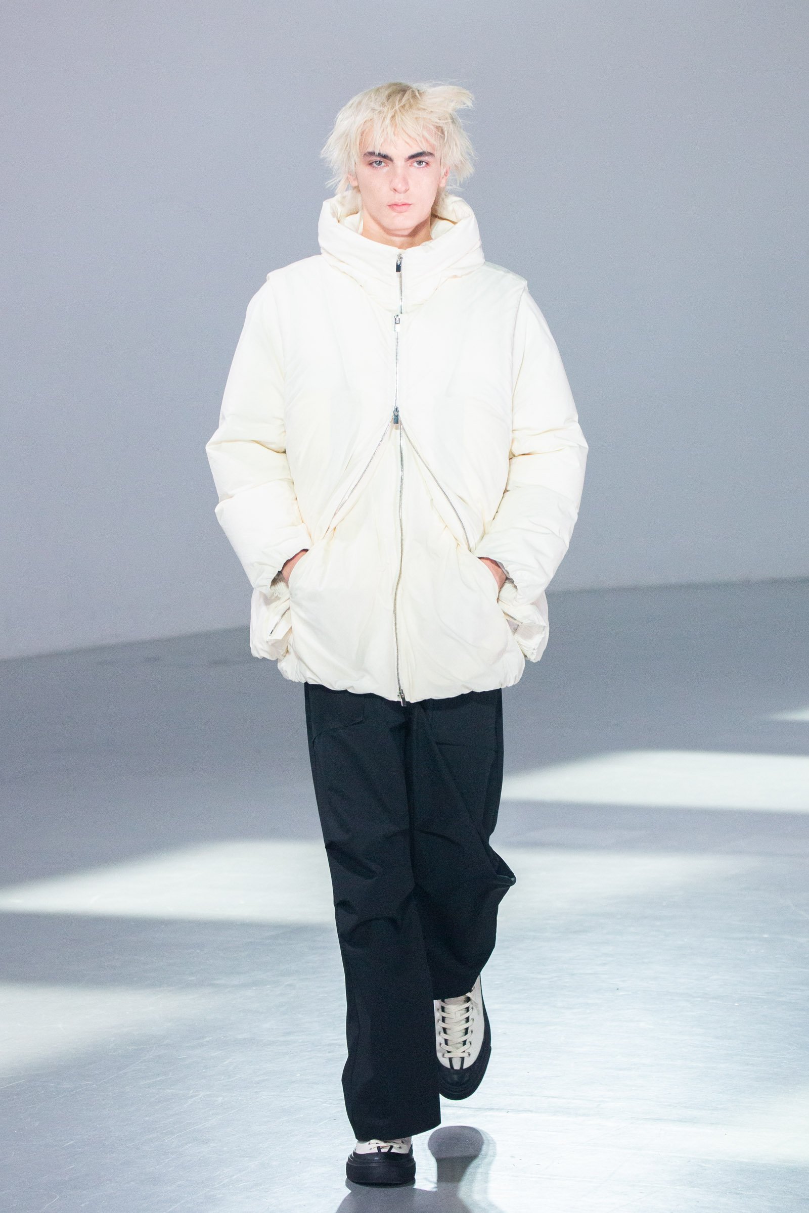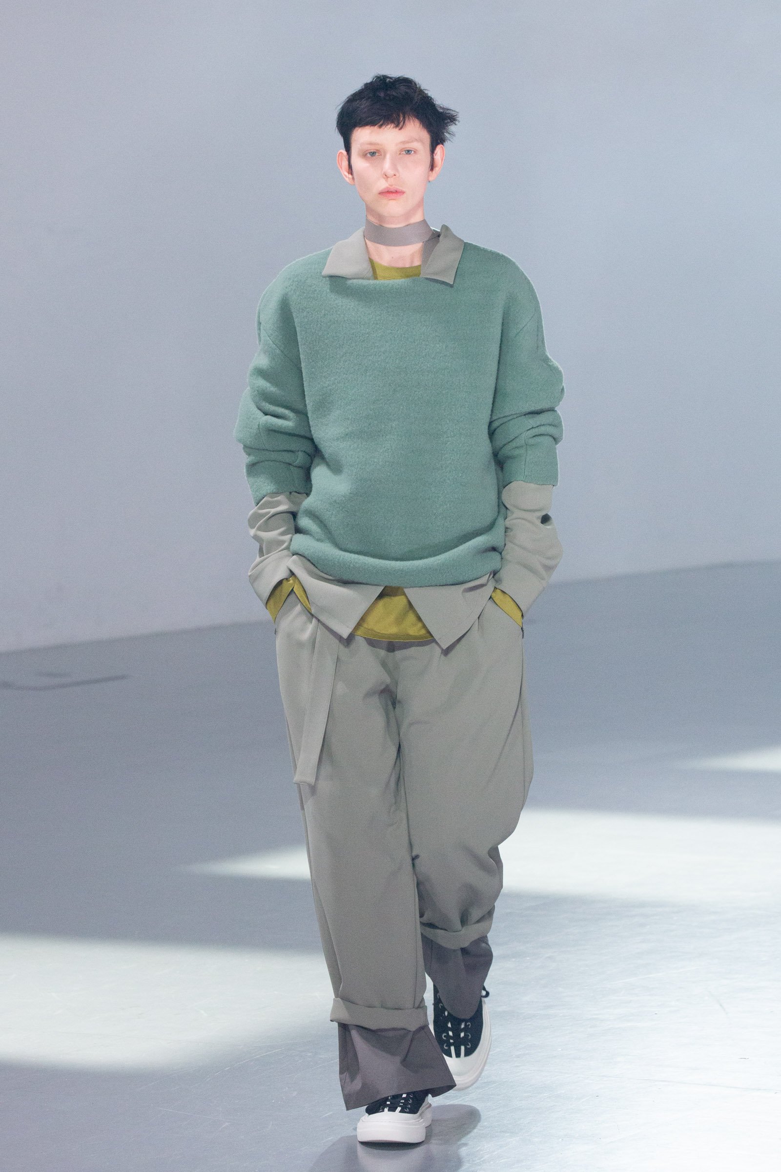 コレクションは、ミニマルなチェスターコートやセットアップなど「人を引き立たせる服」がコンセプトのブランドらしいアイテムを中心にしながらも、総柄のコートとパンツのセットアップやつなぎ、オーバーサイズのジャケット、ワイドパンツなどで、アタッチメントに新たな息吹を吹き込んだ。シューズは、1990年代のシューズデザインを反映しつつ、通常ドレスシューズを製作する際に使われるグットイヤー製法ではなく、ステッチダウンでドレスシューズのディテールを表現することで軽くて柔らかいタウンユースなデザインに仕上げた。