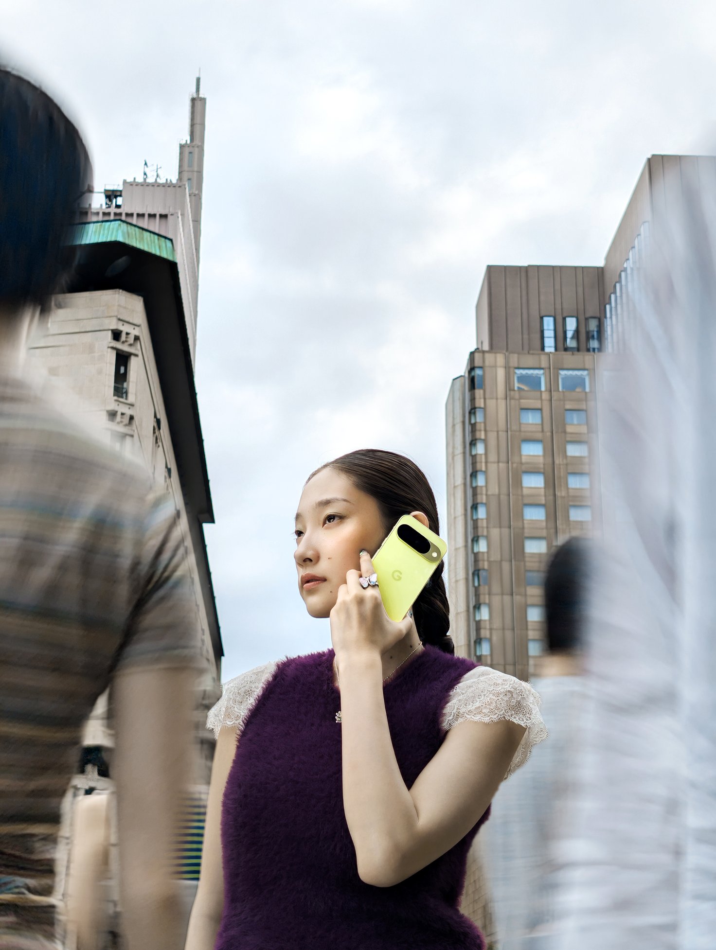 スタイルに寄り添い、アクセサリー感覚でコーディネートを楽しめるのも、豊富なカラーバリエーションがあってこそ。その根底に流れるのが、テクノロジーを美しく生活に取り入れた「エモーショナルデザイン」の思想。自然界に着想を得た色や形、質感をまとい、触れるたびに心地よさを感じさせるGoogle Pixelのデザイン。「石」や「苔」といった、言葉では捉えきれないニュアンスを落とし込んだカラー名も、この哲学を象徴している。機能だけでは得られない、五感を通して伝わるこの美意識が、Google Pixelを“ファッションの一部”として成立させている。
