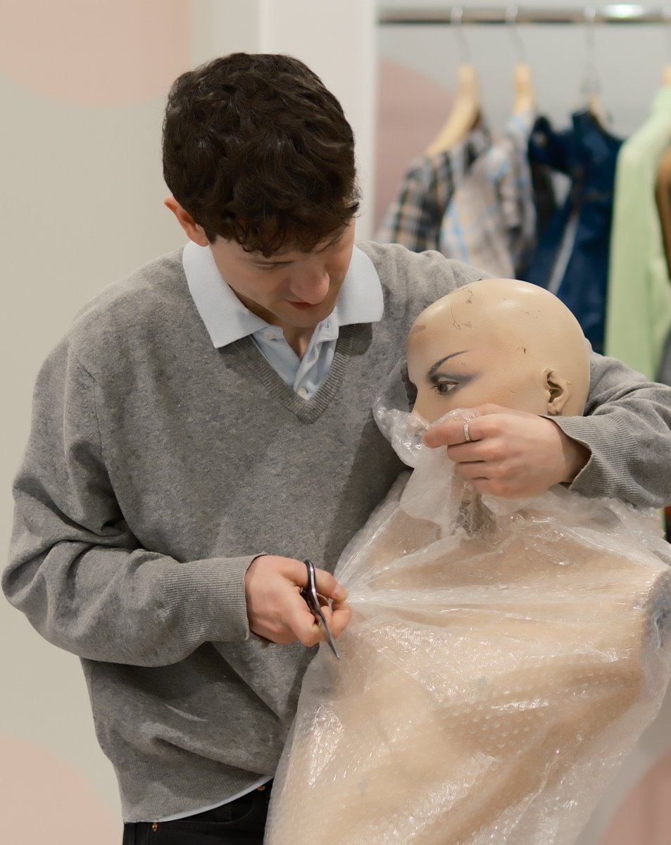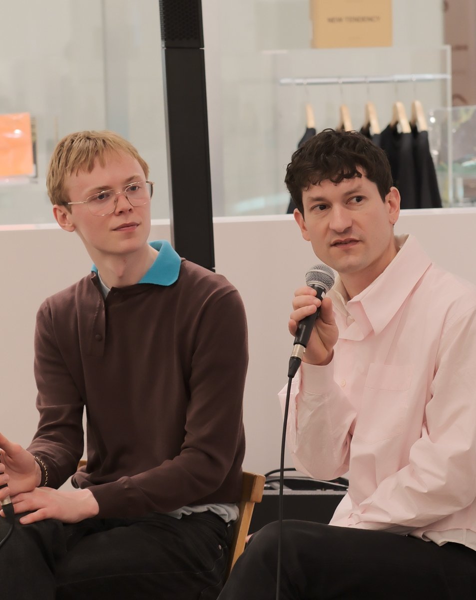 そして2025年秋、ブランド名をALL-INからオーガスト バロンに改名し、再スタート。スタイリストのロッタ・ヴォルコヴァ(Lotta Volkova)は初期から服を購入し、現在はチームメンバーとして参画。「LVMHプライズ2025」のファイナリストにもノミネートされるなど、いま注目を集めている若手ブランドの一つだ。二人の出会いから、ブランド名を変えたきっかけ、そしてクリエイティブとビジネスのバランスについて聞いた。