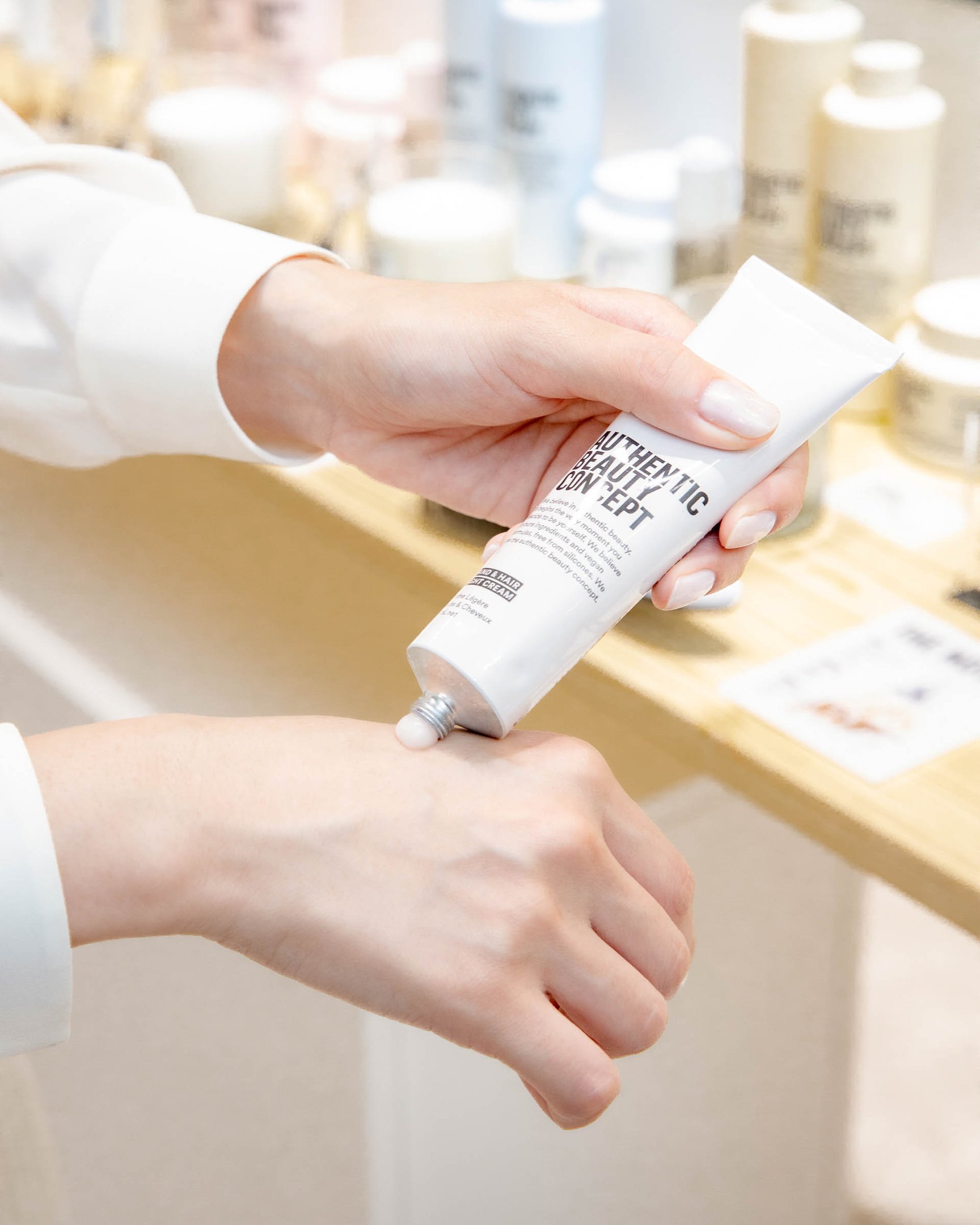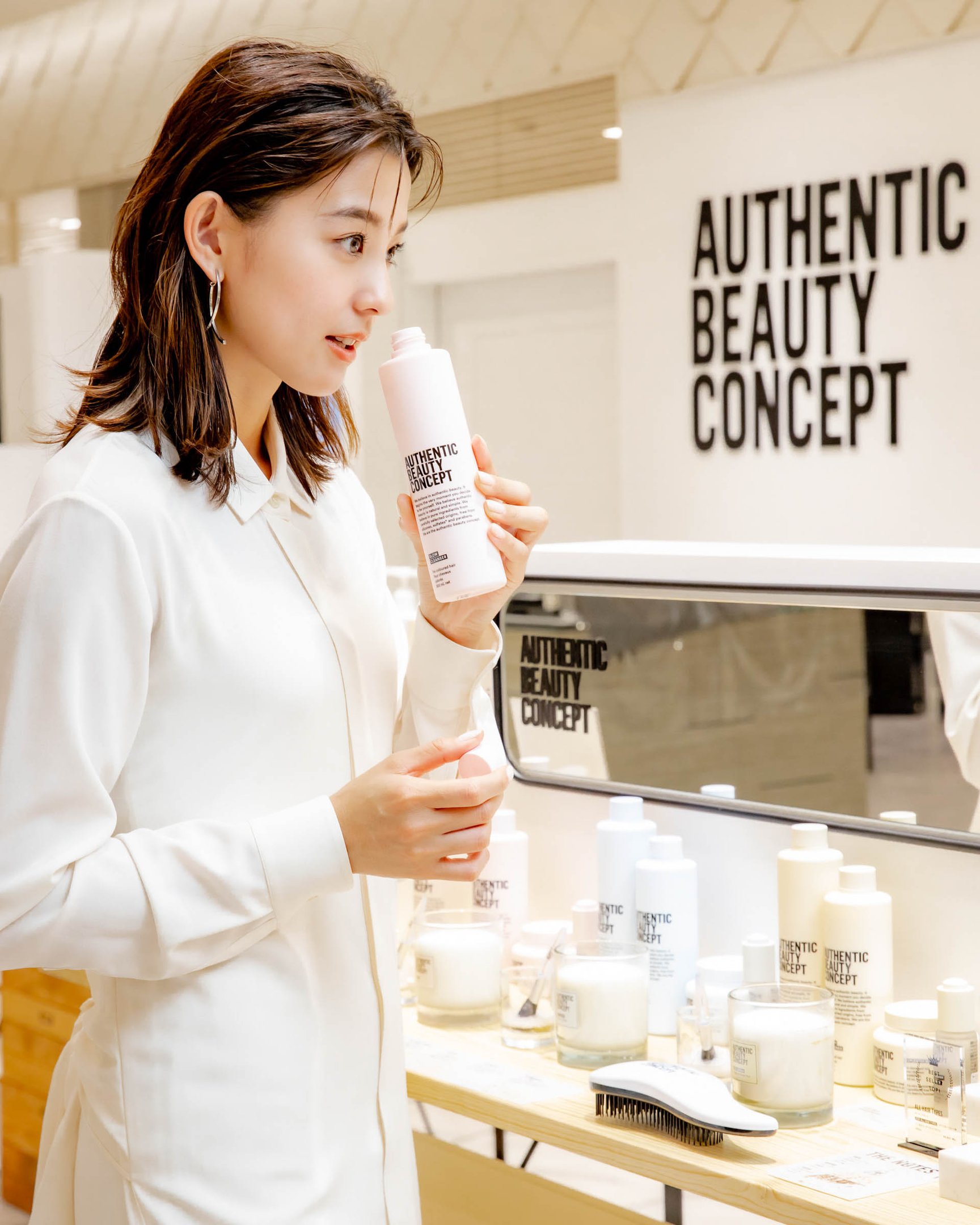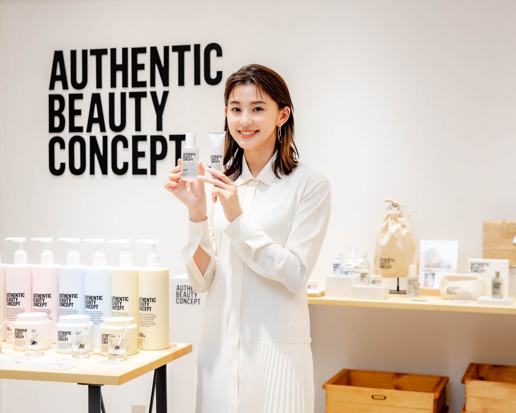 2019年にドイツで誕生し、日本に上陸したサステナブル ビューティケア ブランド「オーセンティック ビューティ コンセプト(AUTHENTIC BEAUTY CONCEPT)」。世界の上質なヘアサロンで使用されている同ブランドが、10月14日に都内初となるフラッグシップショップを渋谷ヒカリエ ShinQsにオープンしました。白を基調とする店内には、現在日本で発売されている全製品のほか、オープンを記念した限定製品がラインナップ。そのフラッグシップショップをモデルの朝比奈彩さんが訪ね、ヴィーガン処方にこだわったアイテムの数々とその世界観を堪能しました。