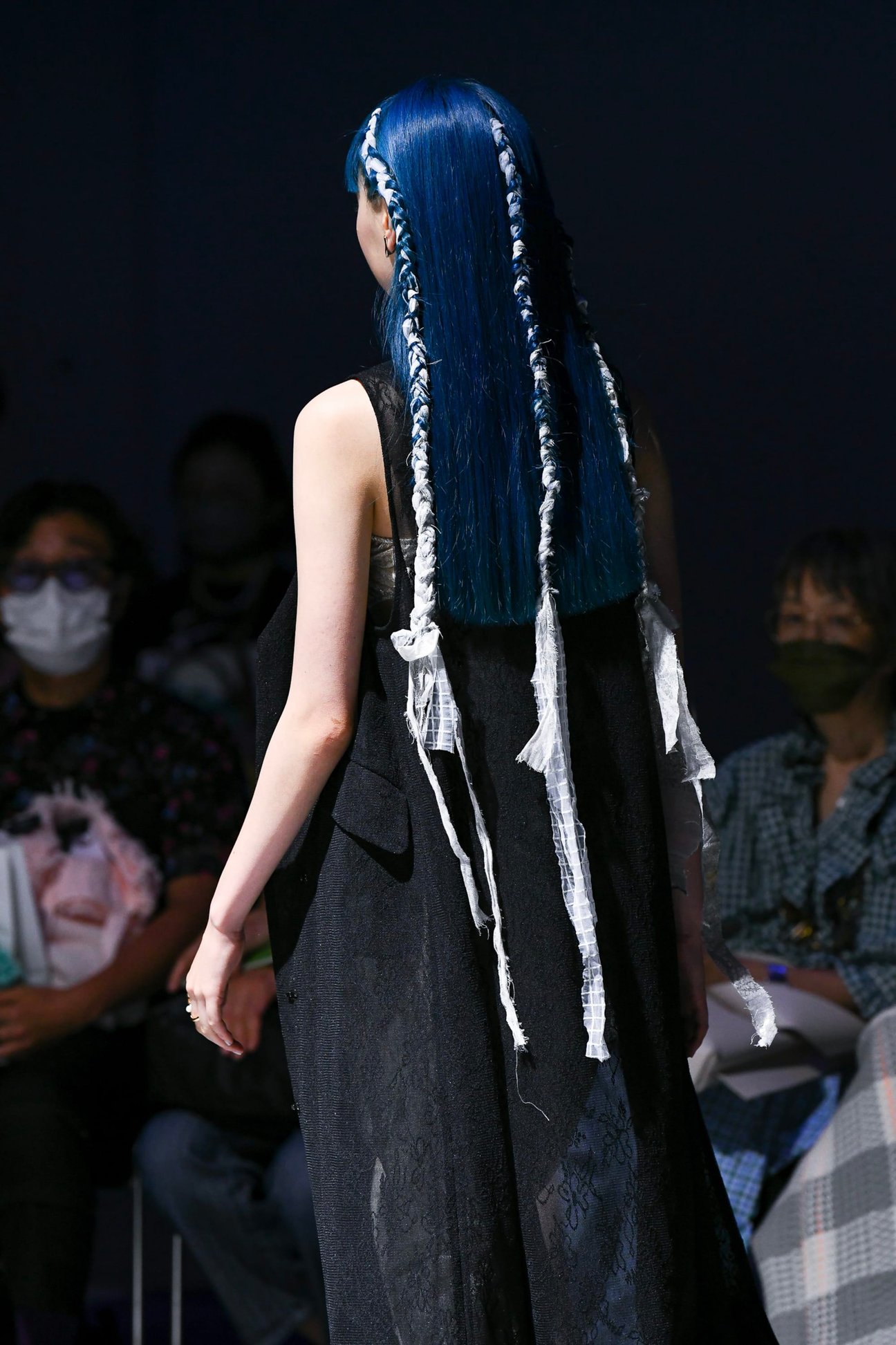 さらに今季ユニークだったのが、モデルのヘアアレンジだ。コレクションと同様のテキスタイルを髪にも編み込むアイデアが、スタイリングに統一感を生み出し、完成度を高めた。