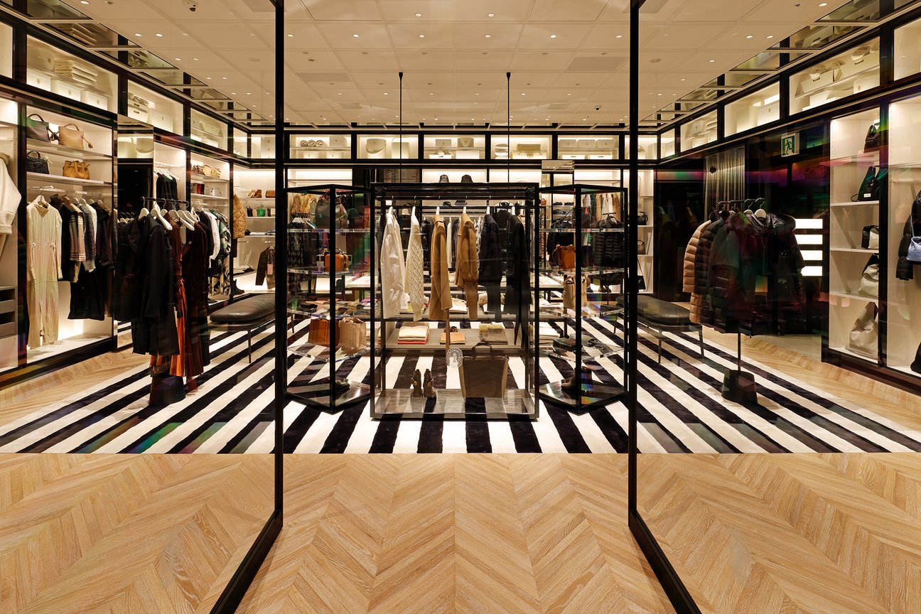 「ベルルッティ(Berluti)」が国内最大級の路面店を出店。最新のデザインコンセプトによる波形状のファサードとラグジュアリーなインテリアのデザインが見どころで、シューズからレザーグッズ、プレタポルテまでフルラインナップで展開します。