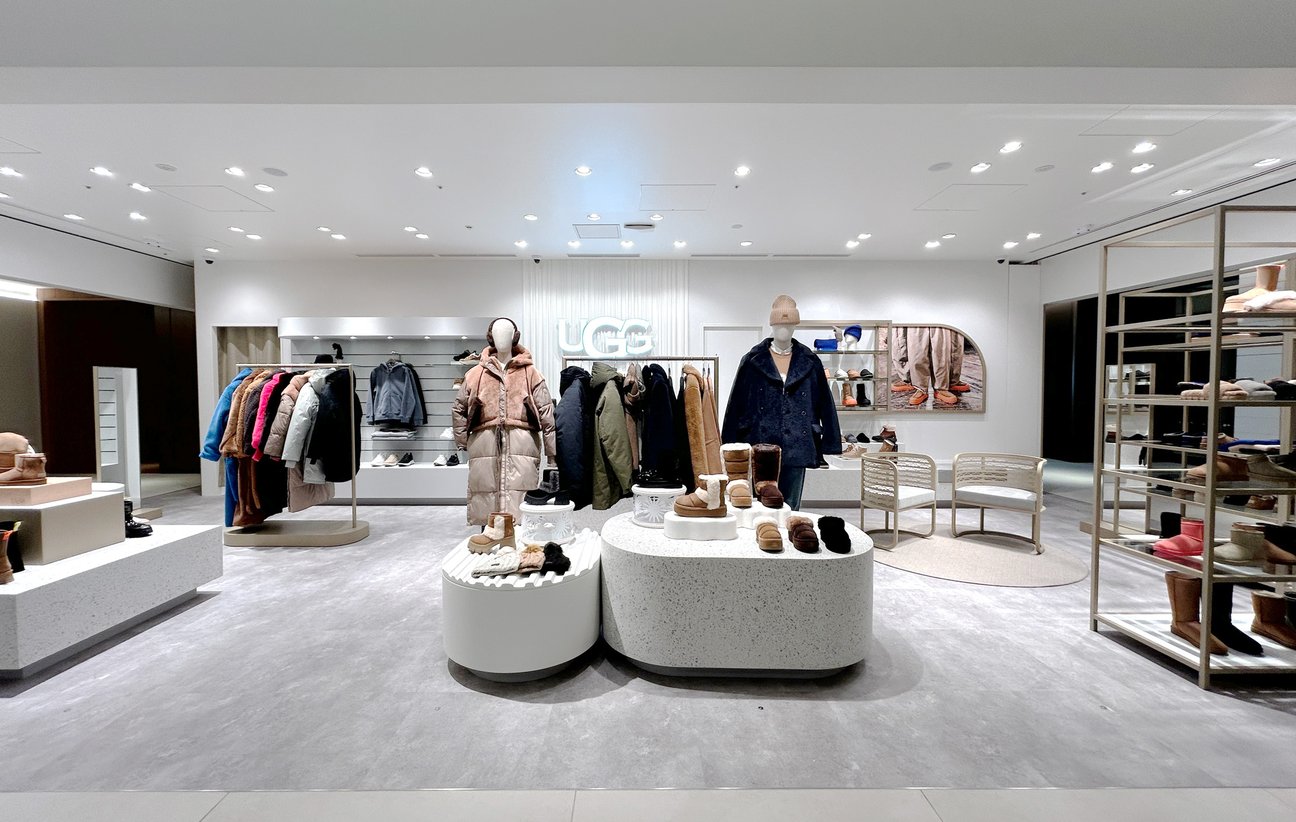 「アグ(UGG®)」では厚底ブーツやスリッポンをはじめとしたシューズから、アパレル、手袋や帽子、マフラーなどの小物、メンズアイテムまでラインナップ。麻布台ヒルズ店限定品も揃います。オープン時は税込2万8000円以上購入した人にミニケアキットを先着で配付します。