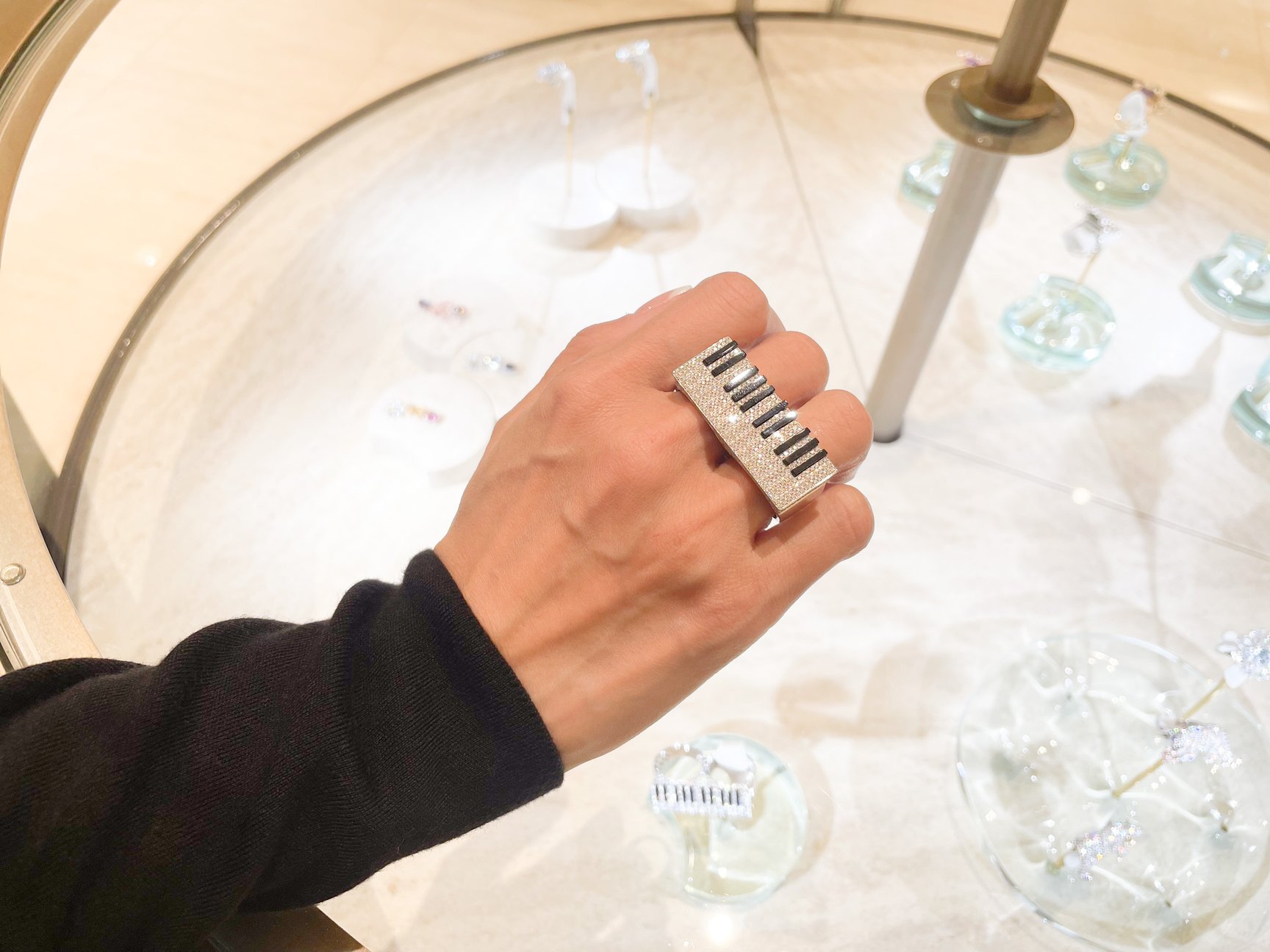 世界で唯一の直営店となる麻布台ヒルズは、コレクションをフルラインナップで展開。現代美術作家の杉本博司氏と建築家の榊田倫之氏による建築設計事務所「新素材研究所」が設計しました。ダイヤモンドジャーニー(原石証明)のあるダイヤモンドで特別オーダーも受け付けます。