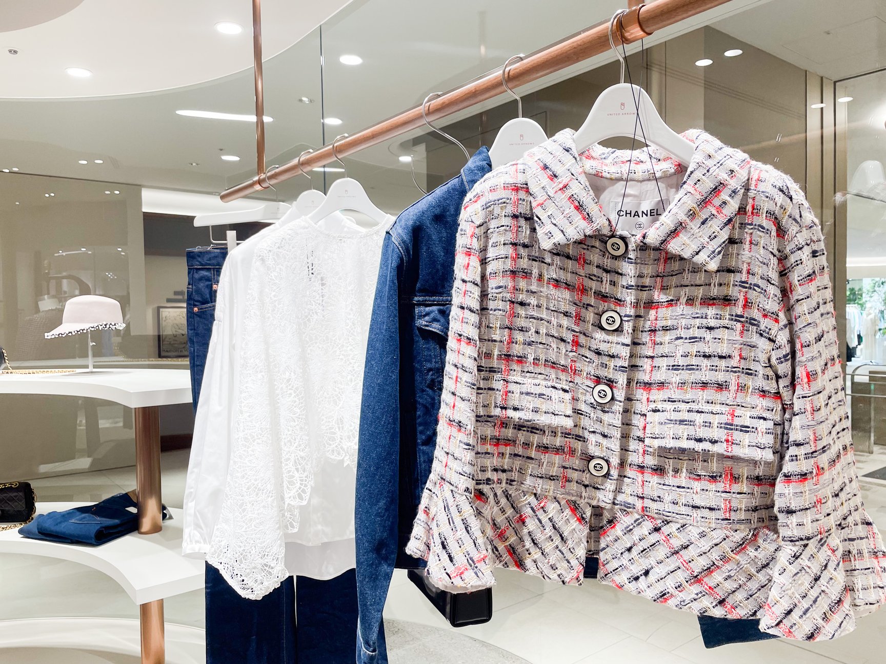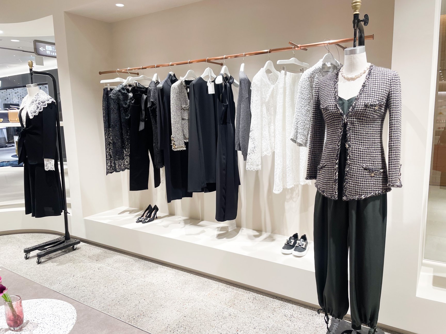 セレクトでは、六本木ヒルズとは異なるコアなアイテムを集積。「ハイク(HYKE)」や「バウト(BOWTE)」に加えて、「ボーフィー(Beaufille)」と「バーナデット(BERNADETTE)」を同店で初めて取り扱います。「シャネル(CHANEL)」のヴィンテージはウェアからアクセサリーまで、他店にはないボリュームで用意します。