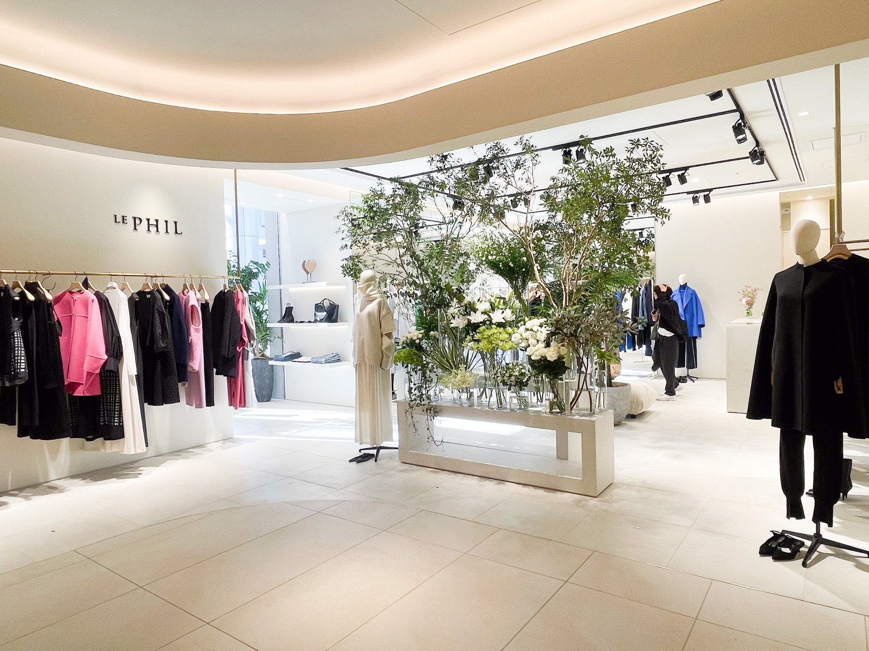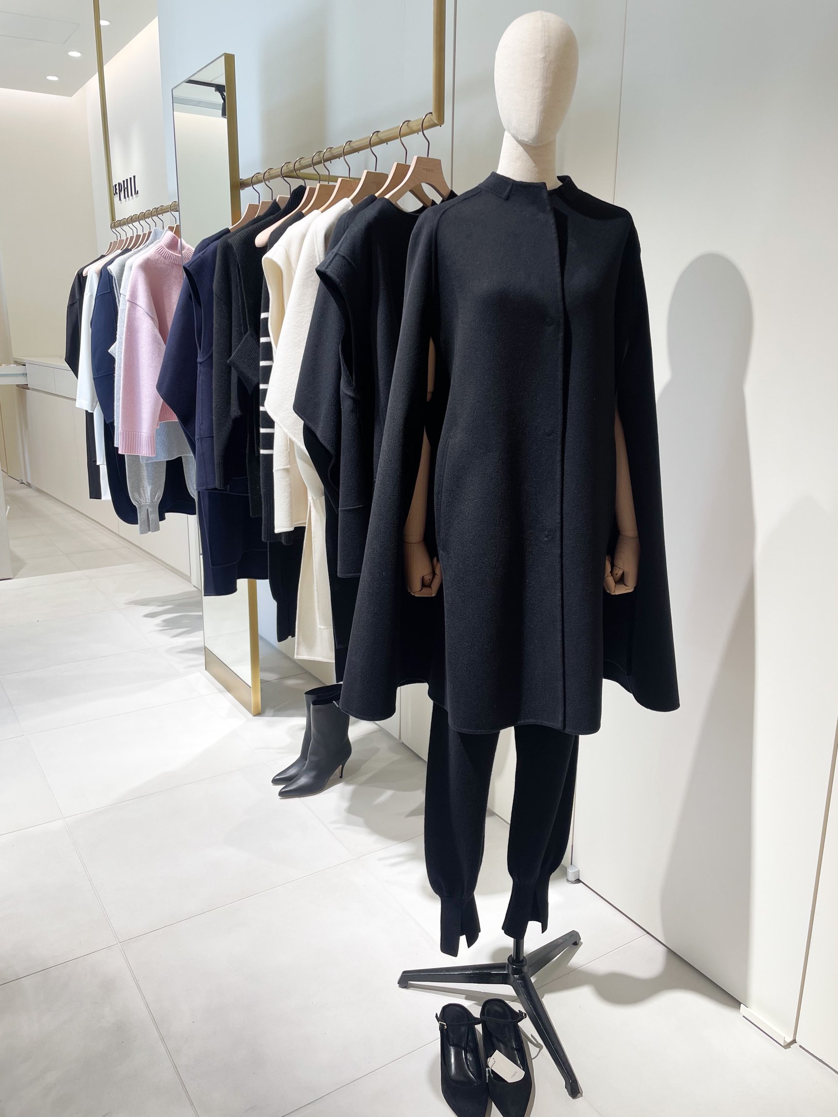 「ルフィル(LE PHIL)」はサンエー・インターナショナルによるウィメンズブランド。しなやかに女性らしくありたいと願う大人の女性の日常に寄り添いながら、クチュール的で美しいことを追求した高品質・高感度なコレクションを提案しています。麻布台ヒルズの店舗では旬の植物で彩り、自然と共に暮らす心地よさを感じられる空間をデザインしています。店頭ではカシミヤ100%素材のカプセルコレクションなどをラインナップ。限定モデルとして、ピュアカシミヤケープジャケット(22万円)、カシミヤミドルゲージニットジレ(6万1600円)、カシミヤミドルゲージニット(8万8000円)を販売します。