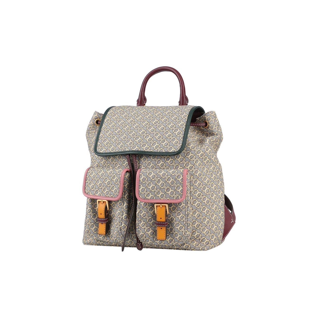 キャンバス素材にグリーンやピンク、イエロー、バーガンディーのマルチカラーがポケットやハンドルに配された「トリー バーチ(TORY BURCH)」のバックパック。ちょっとした遠出にも使えるサイズ感も嬉しいところ。ベースは落ち着いたモノグラムなのでニットやアウターとの相性も良さそう。