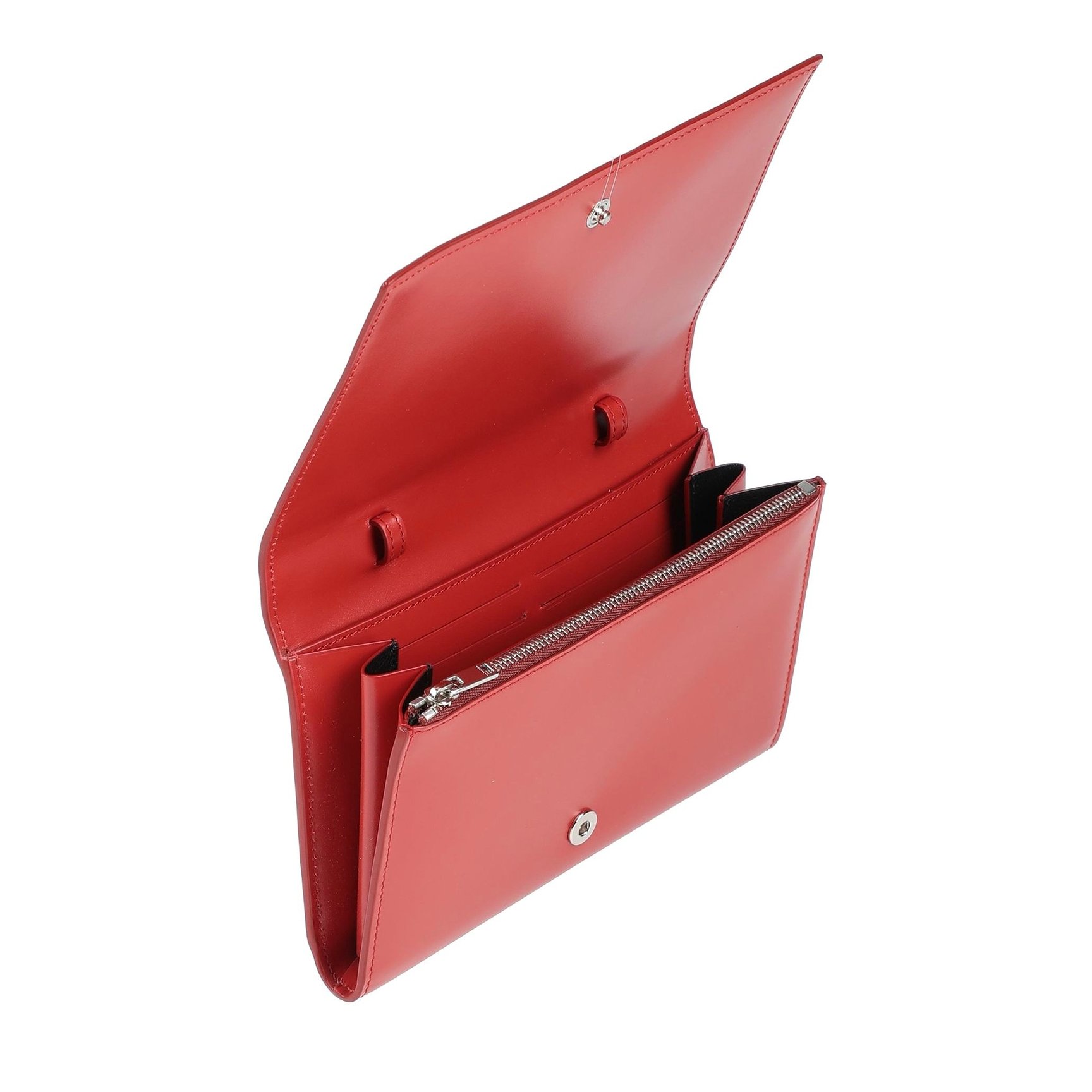 ストラップのノットがアイコニックな「ジル サンダー」のバッグは縦ではなく横のタイプをセレクト。口がしっかりと閉じられて、収納もあるのでウォレットバッグとして使えます。鮮やかな赤をコーデのポイントに。