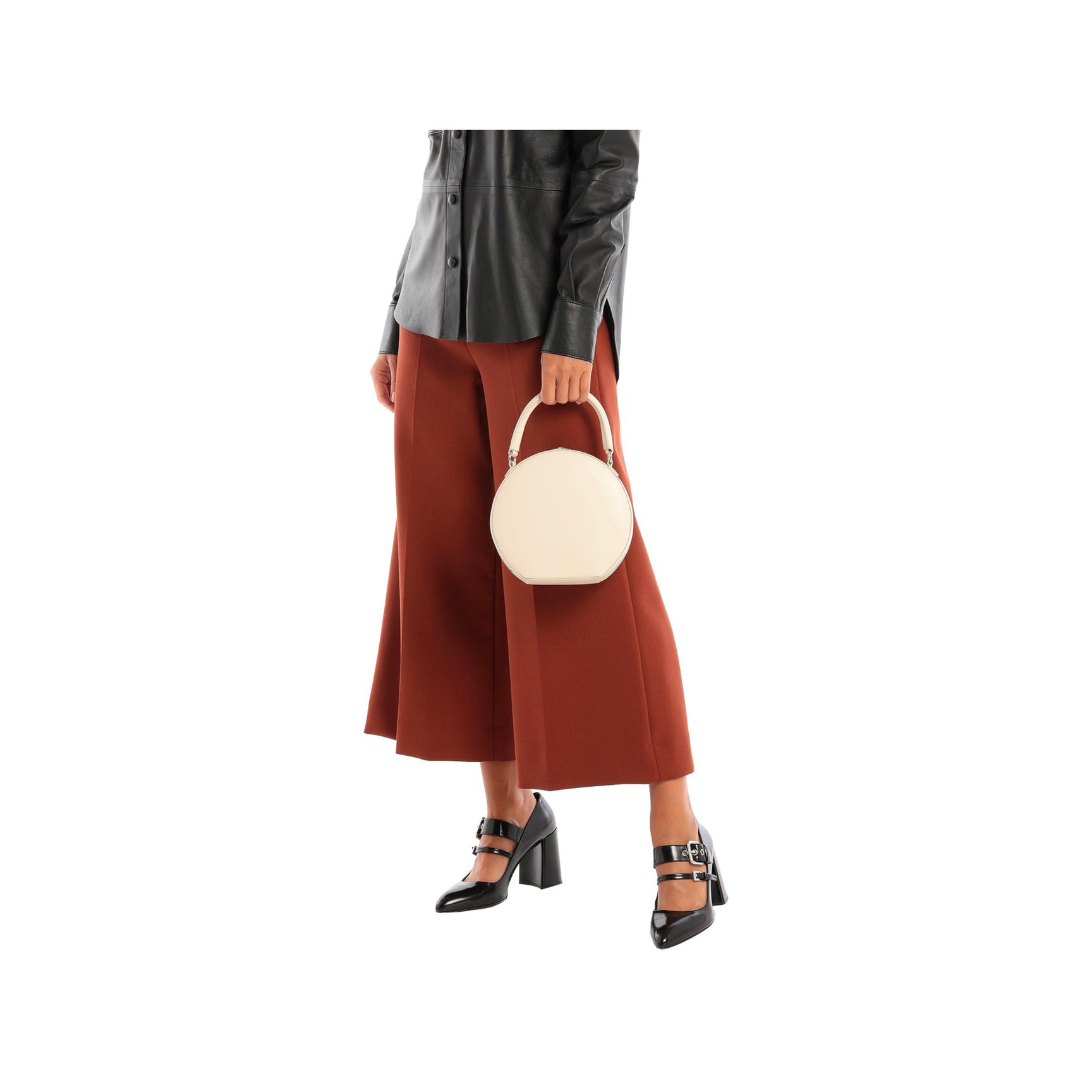 黒などダークなトーンになりがちな秋冬の装いには落ち着いたアイボリーのアクセサリーを取り入れると馴染みがよくスタイリングが引き締まります。「レベッカミンコフ(REBECCA MINKOFF)」のバッグは個性的なラウンドシェイプ。ショルダーにもなりますが是非ハンドバッグとして使ってみて。