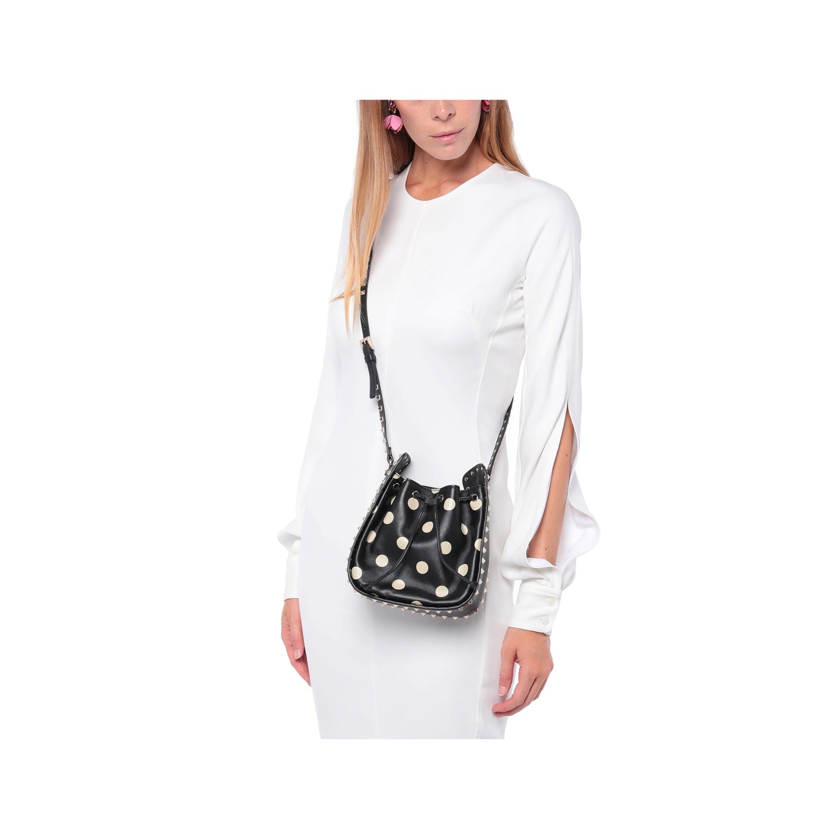 「ヴァレンティノ ガラヴァーニ(VALENTINO GARAVANI)」お馴染みのスタッズと水玉がガーリーでパンキッシュなクロスボディバッグ。シンプルなモノトーンコーデに一点投入で個性が生まれるデザインです。