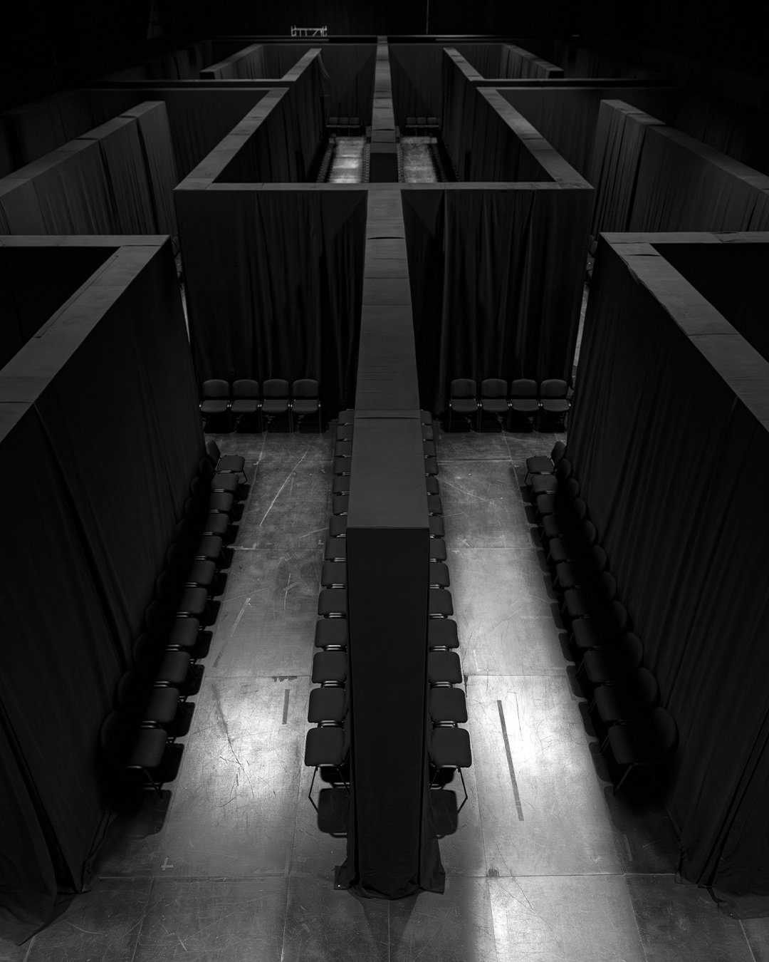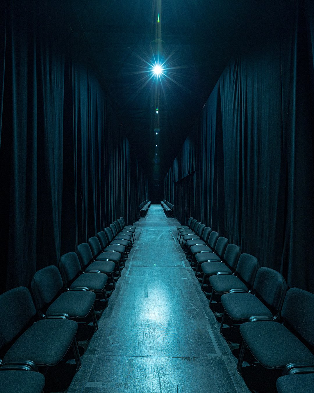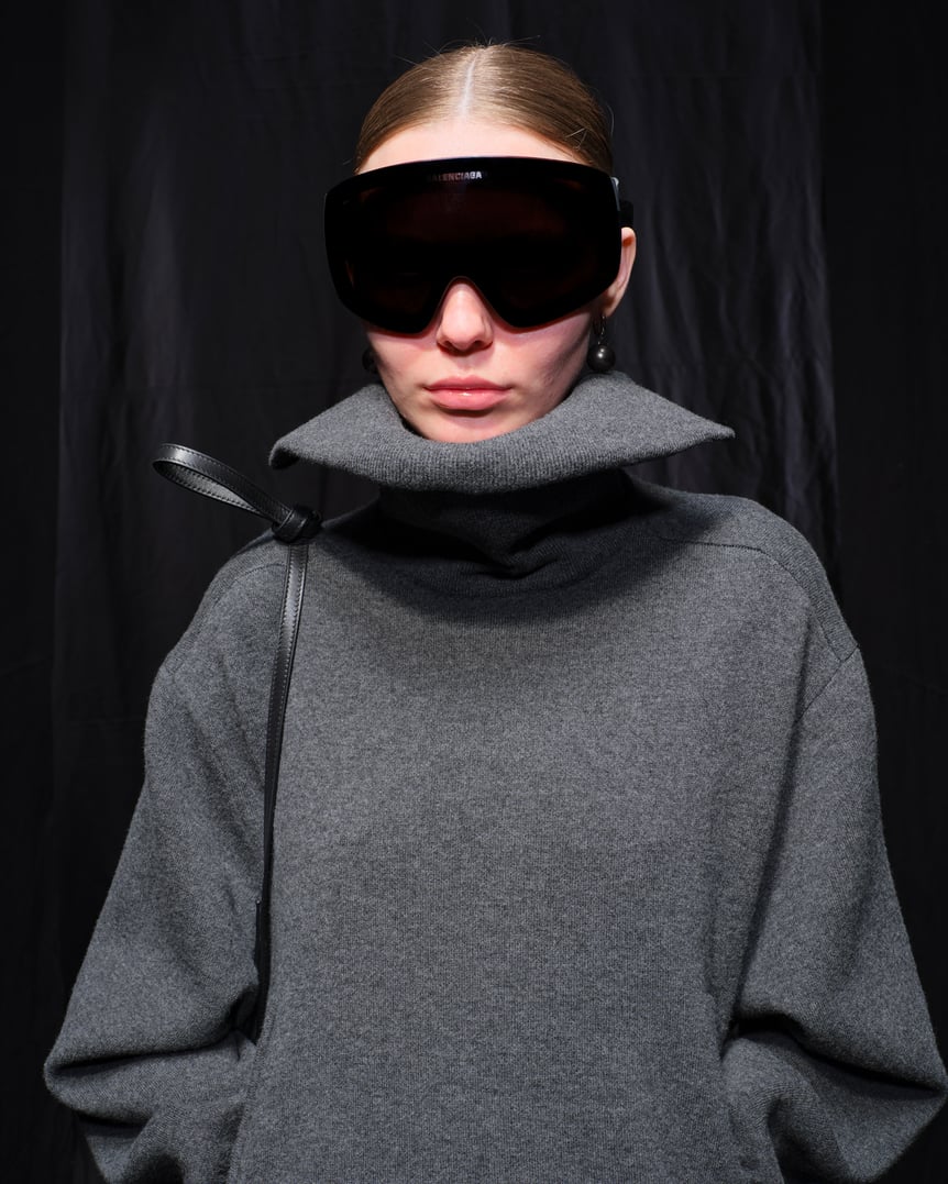 パリ7区のアンヴァリッドに設置されたショー会場は、まるで迷路だった。ランウェイとなる通路は狭く、VIPもセレブリティも全てのゲストがフロントロウ。この入り口と出口が複数存在する迷路を、デムナはクリエイティブプロセスの比喩と表現していた。そして「始まる場所」という意味でのバックステージを、ランウェイに見立てた。