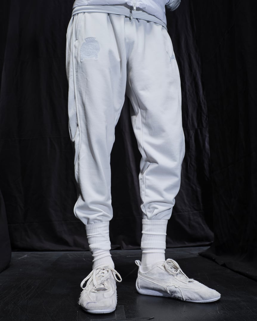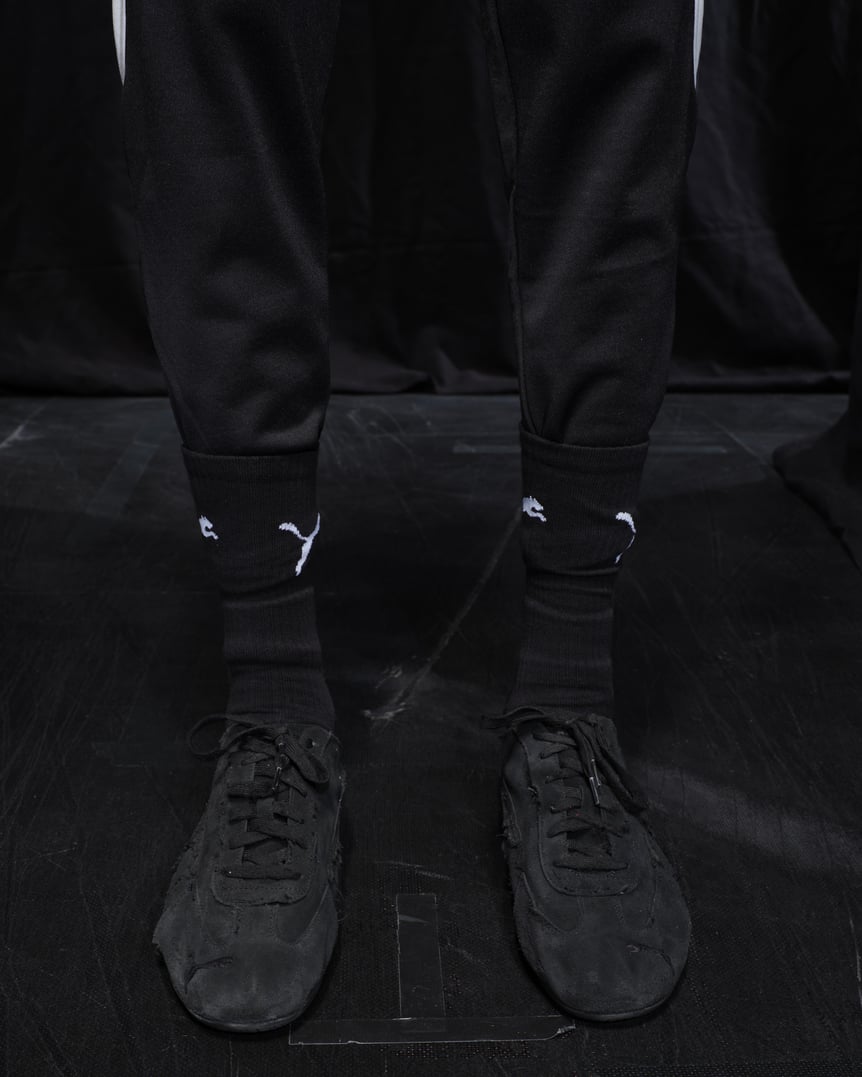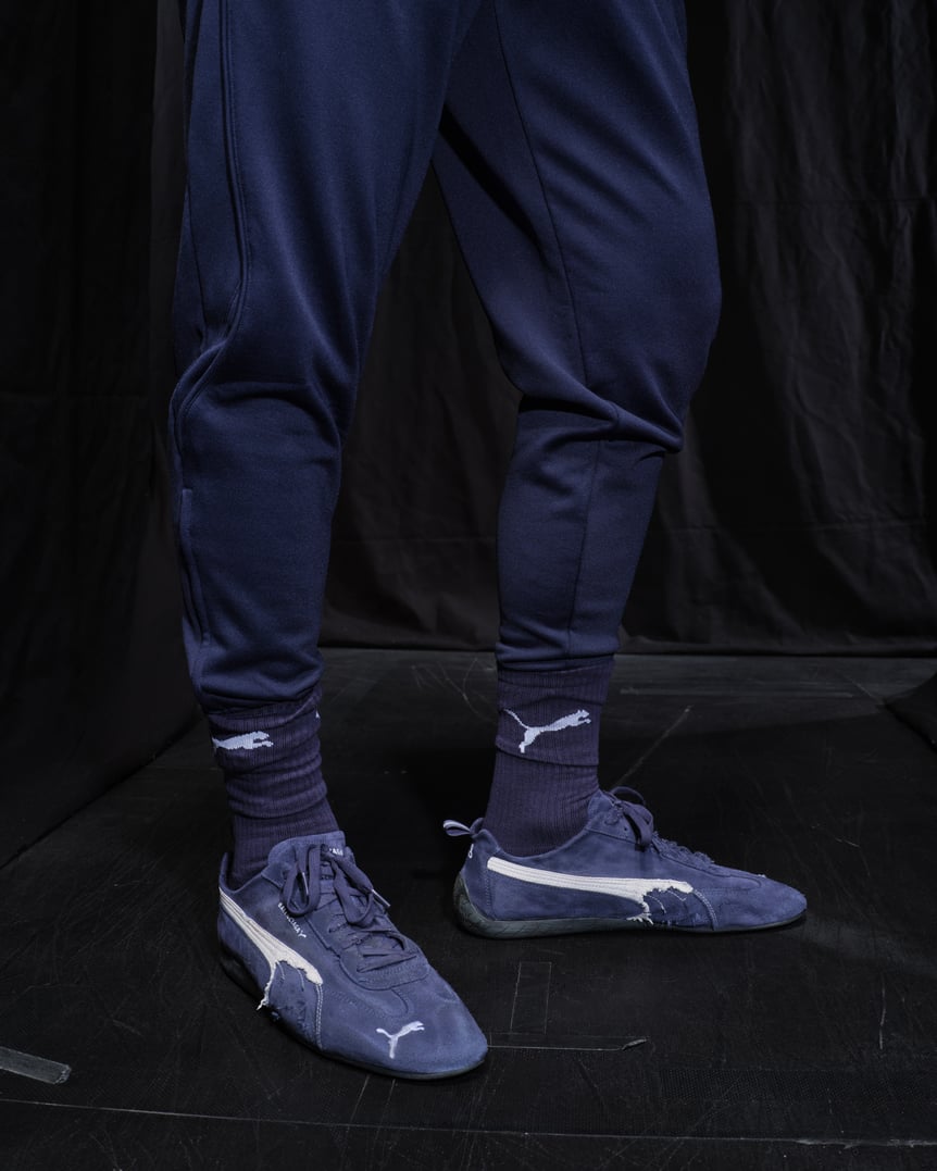 ショーの前日に公式インスタグラムで告知された通り、「プーマ(PUMA)」とのコラボレーションアイテムが注目を浴びた。サッカーやモータースポーツにおける、プーマの先駆的なイノベーションからインスピレーションを得てデザインされたという。
