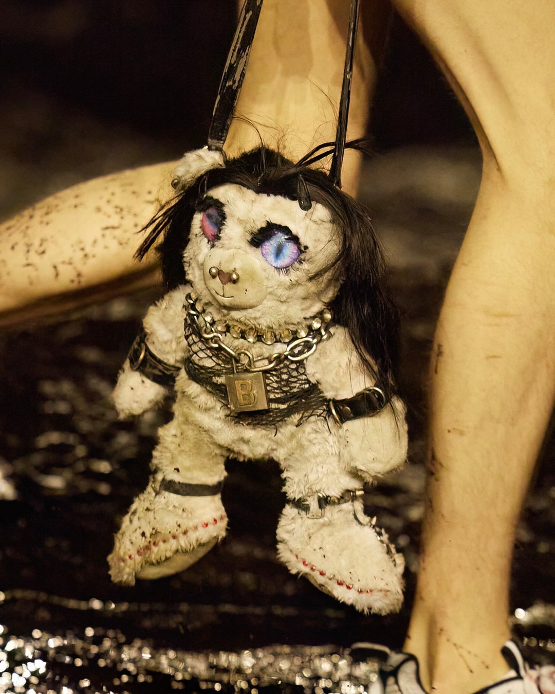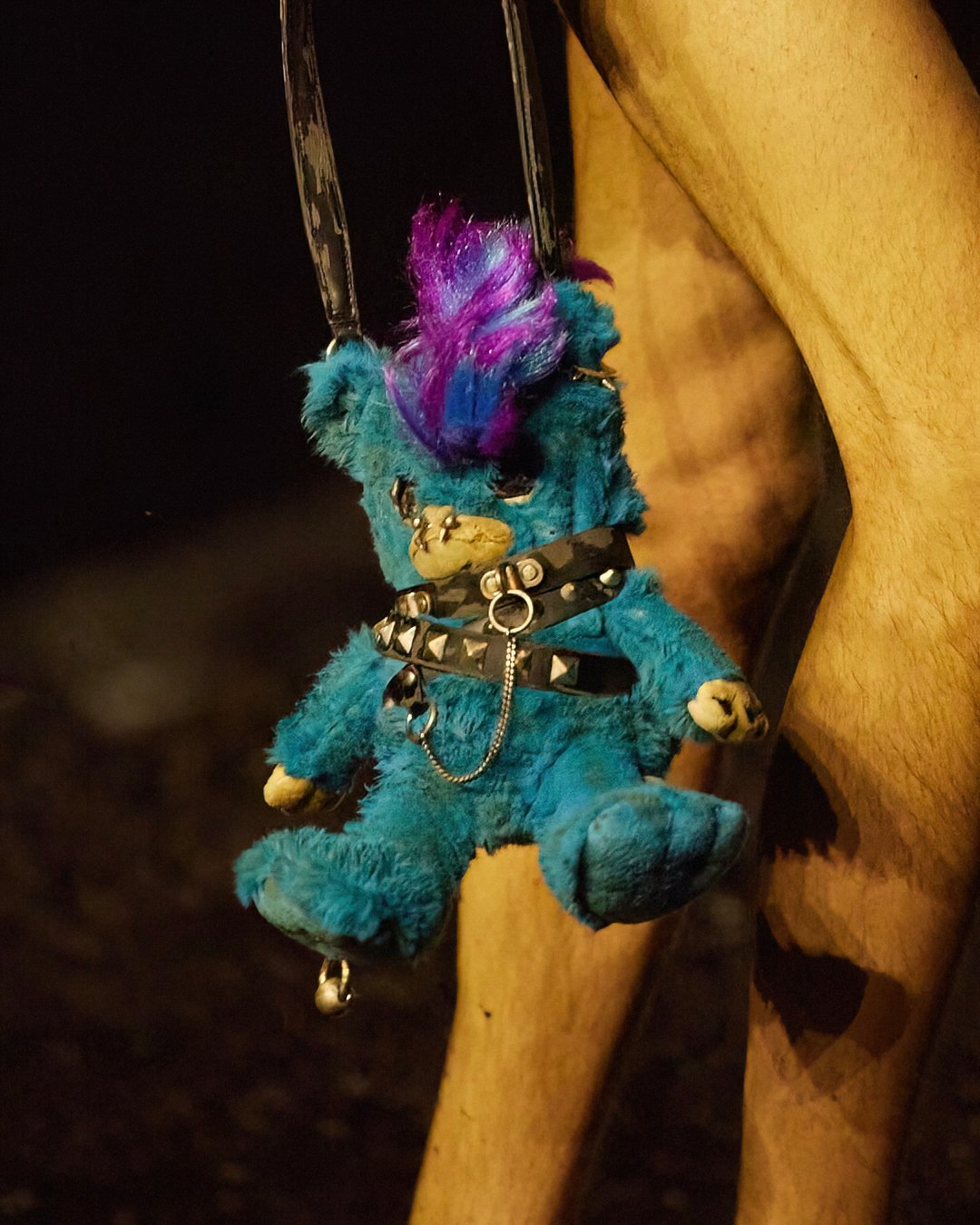 また、テディーベアカンパニーの協力により製作された5体の「マスコッターバッグ」は、三つ目やモヒカンなどそれぞれ異なる個性を持つパンクなベアたちで、背中のポケットにスマートフォンを入れることができる。ランウェイでは薄く汚した状態で使用されていた。