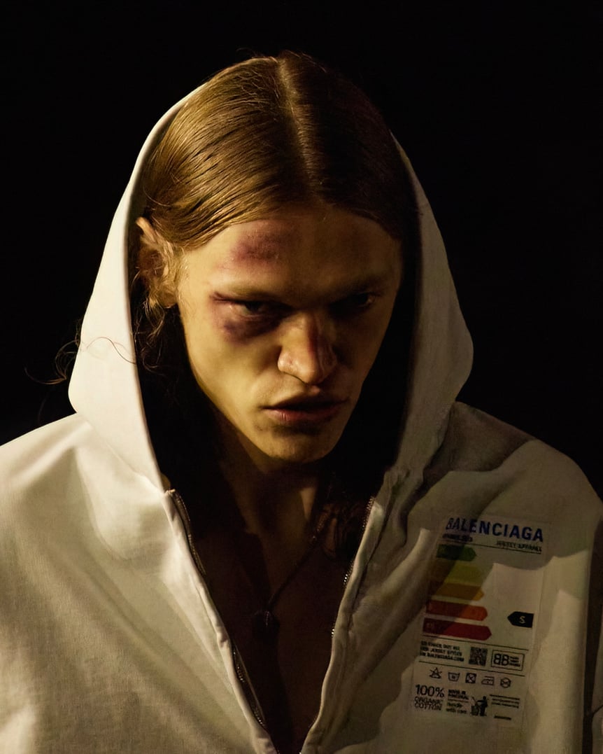 客席に置かれていたデムナのショーノートには、「自分らしくいようとすればするほど、顔を殴られます。しかし、お互いに違うということは、なんて素晴らしいことでしょう」といった自身の思いが記されていた。男女のモデルたちの表情はみな険しく怪我をしたようなメイクのモデルもいたが、「課題は、殴られたり倒されたりした後、立ち上がって本当の自分に向かって歩き続けることです」とし、自身のアイデンティティを守るための勇気や粘り強さの表現だったことを明かしている。