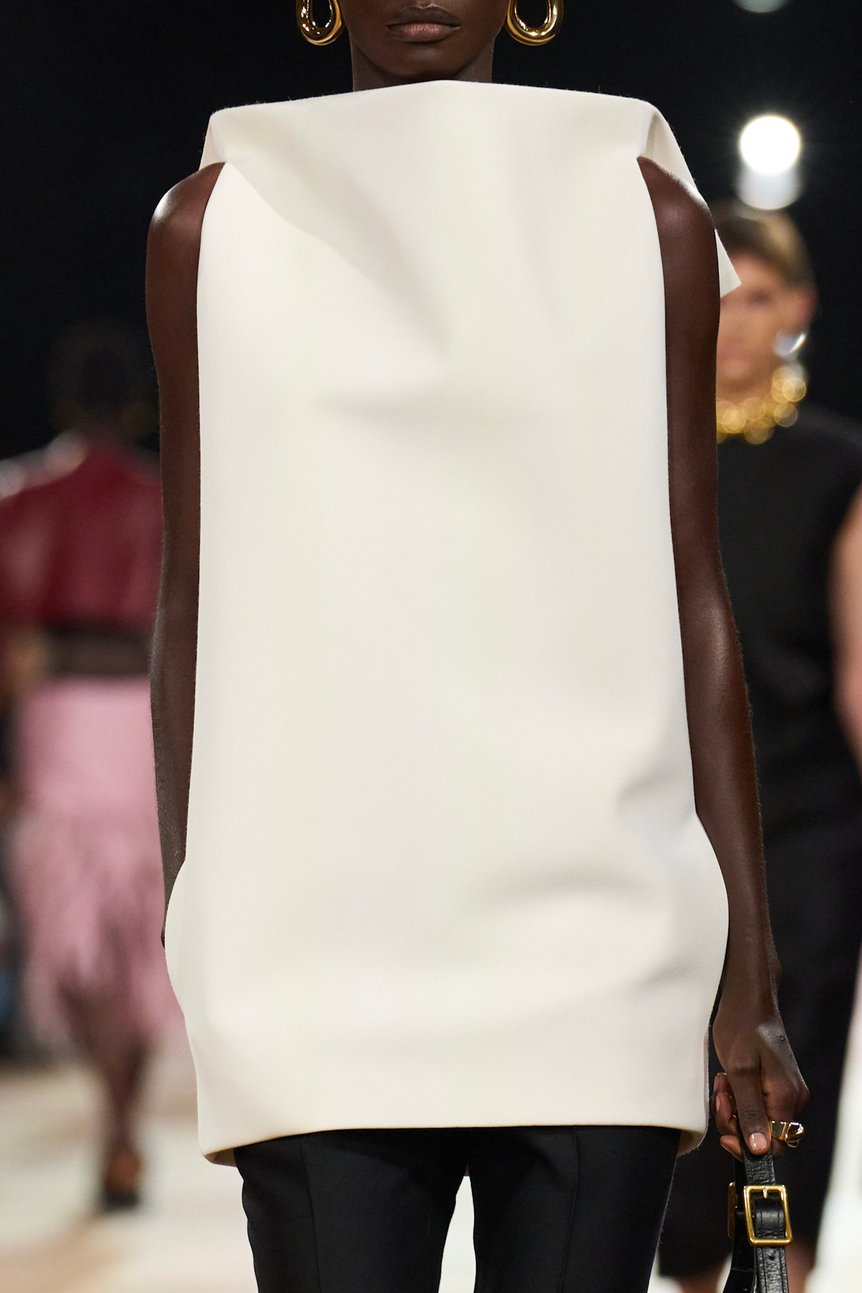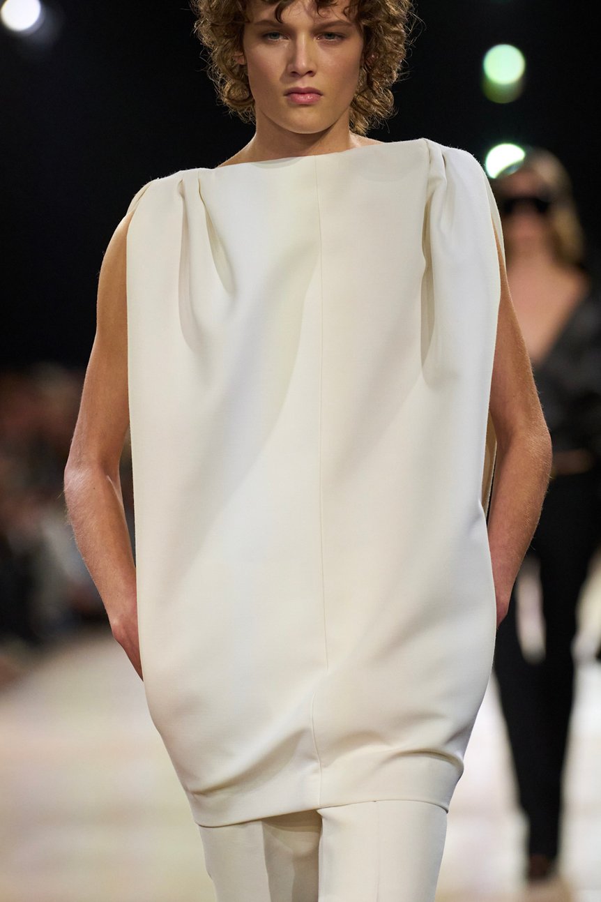 シルエットもさることながら、ピッチョーリは日常的で着やすさを重視したといい、ほぼ全てのモデルがポケットに手を入れたポーズでランウェイを歩いていたのも印象的で、機能的ではあるものの型を崩すが故に女性服から排除されたポケットを、シルエットを重視するバレンシアガというメゾンの新たな節目となるコレクションであえてそのように見せたのは、現代社会を生きる女性への寄り添いの表れのようにも見え、ピッチョーリの強いメッセージにも感じる。