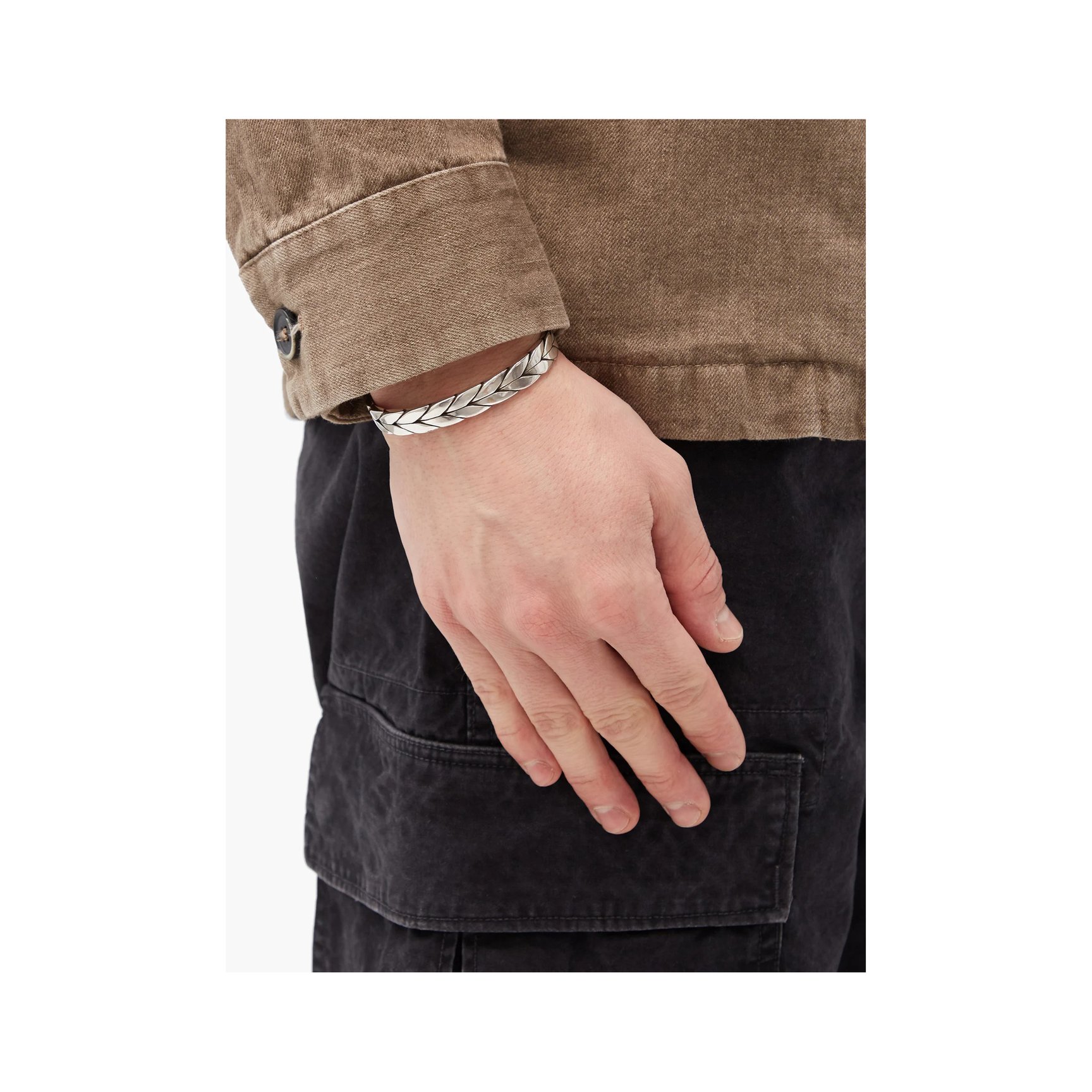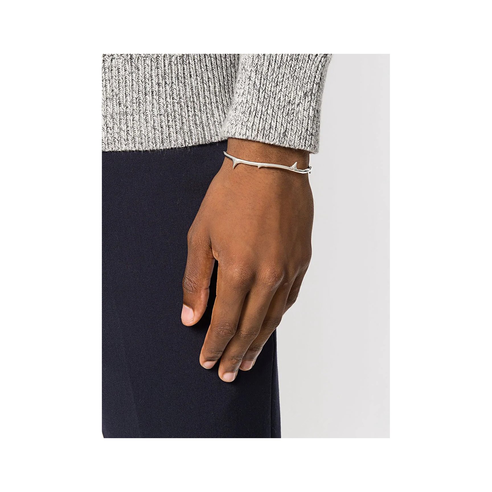 動物の牙や骨などを感じさせるシャープな造形のジュエリーが揃う「ショーン リーン(Shaun Leane)」。シルバー製の華奢なバングルには、バラのトゲを模した造形が。繊細ながらもどこか危険な雰囲気を醸し出す一品は、メンズにもぴったり。