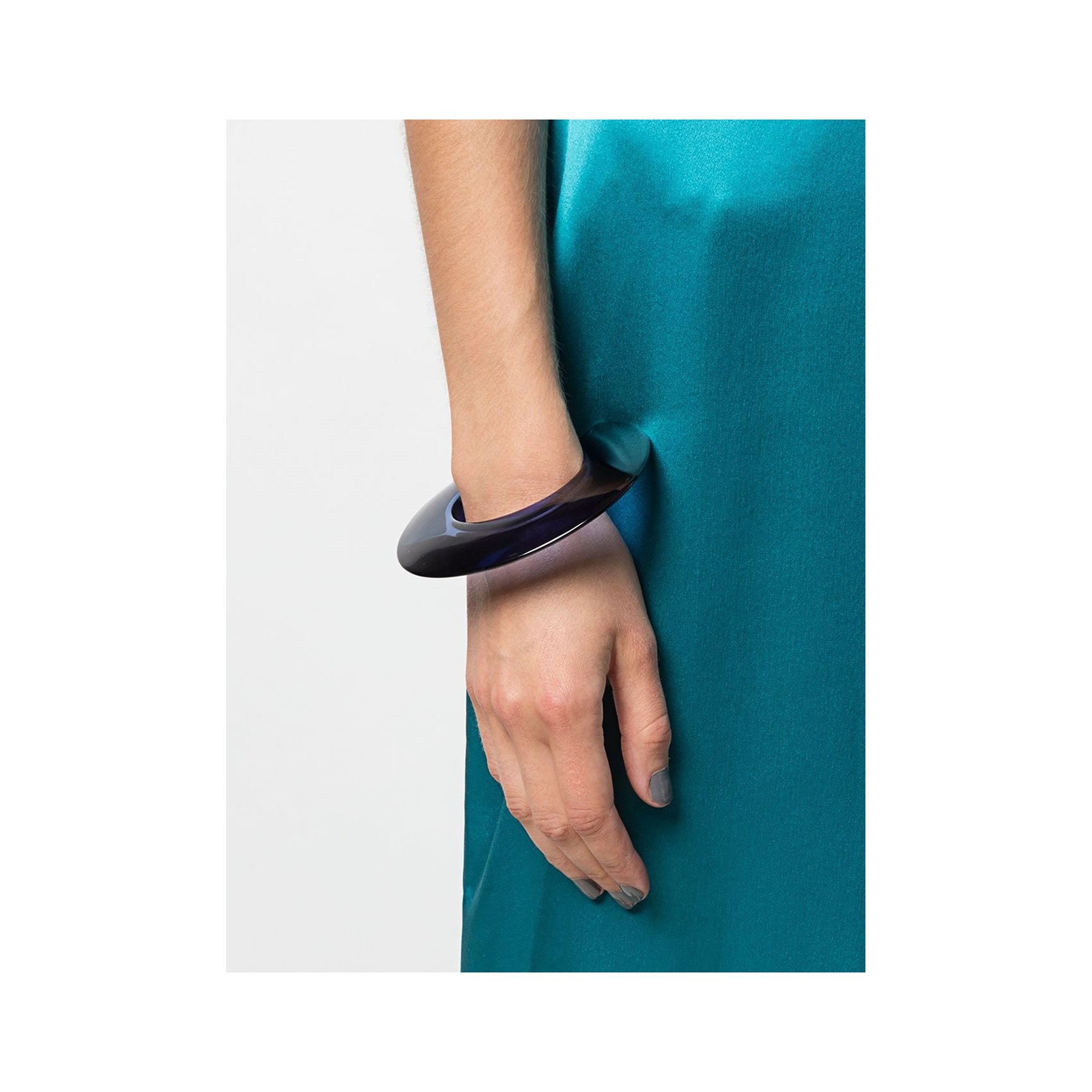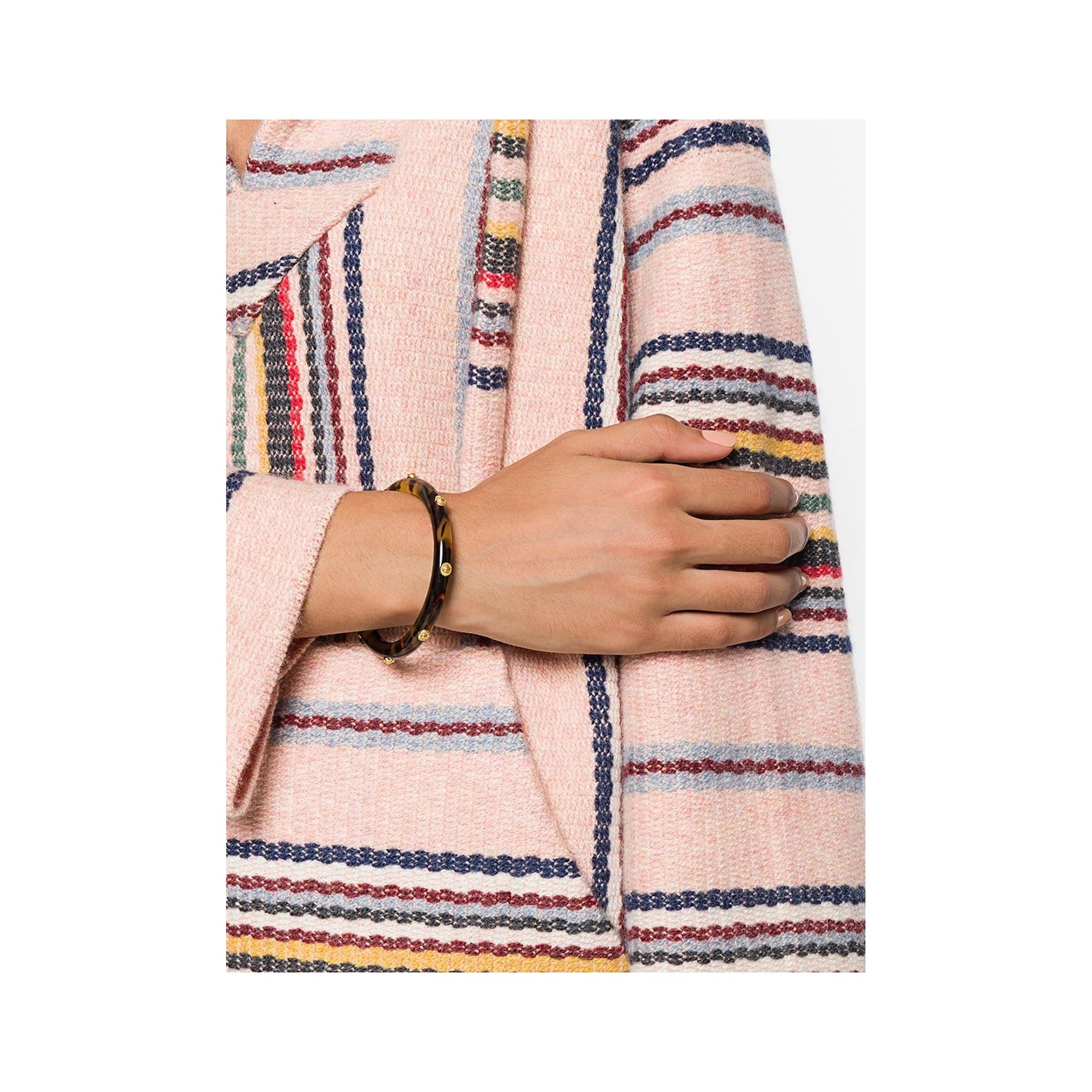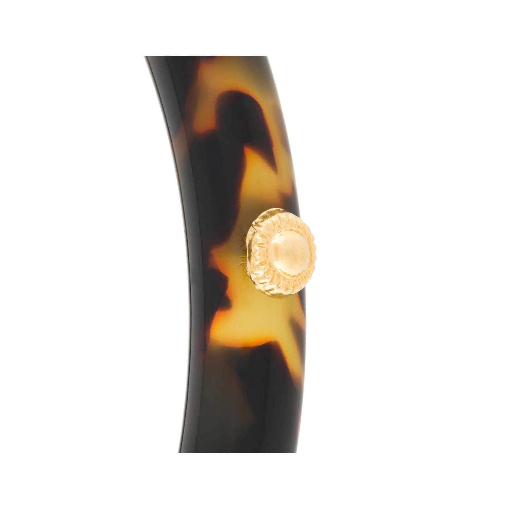 メタル素材ではないバングルは、素材の持ち味を活かした個性派アイテムが揃います。アセテート製の「ガス ビジュー」のバングルです。べっ甲パターンの奥深さに、24Kゴールドの輝きをアクセントとして添えています。