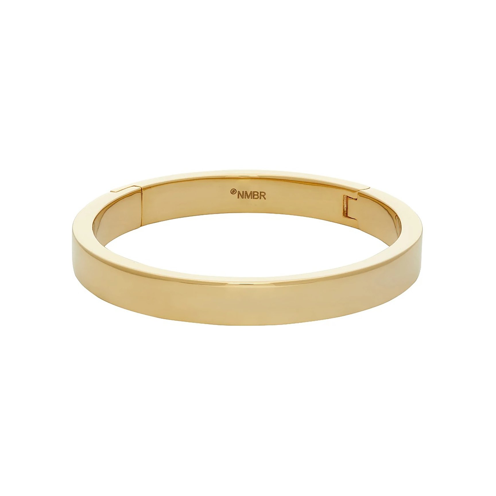 ヒンジ式留め具の「ナンバリング(NUMBERING)」のバングルは、ゴールドの華やかさとモダンさのバランスが絶妙。様々なスタイリングに合わせられそうです。