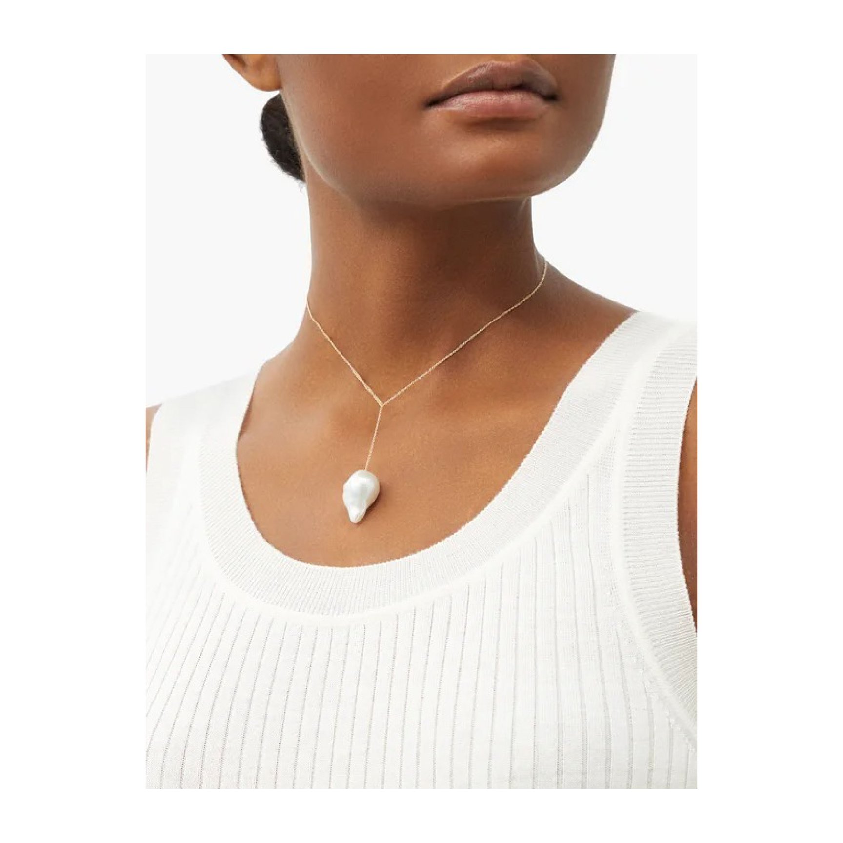 デンマーク出身のジュエリーデザイナー、ソフィー ビル ブラーエ(Sophie Bille Brahe)がデザインしたハンドメイドのネックレス。天然のホワイト淡水バロックパールが華奢なチェーンの先端に光り、美しくエレガントなネックラインを実現します。繊細な上品さを持つパールネックレスは、オフィスシーンにもマッチ。