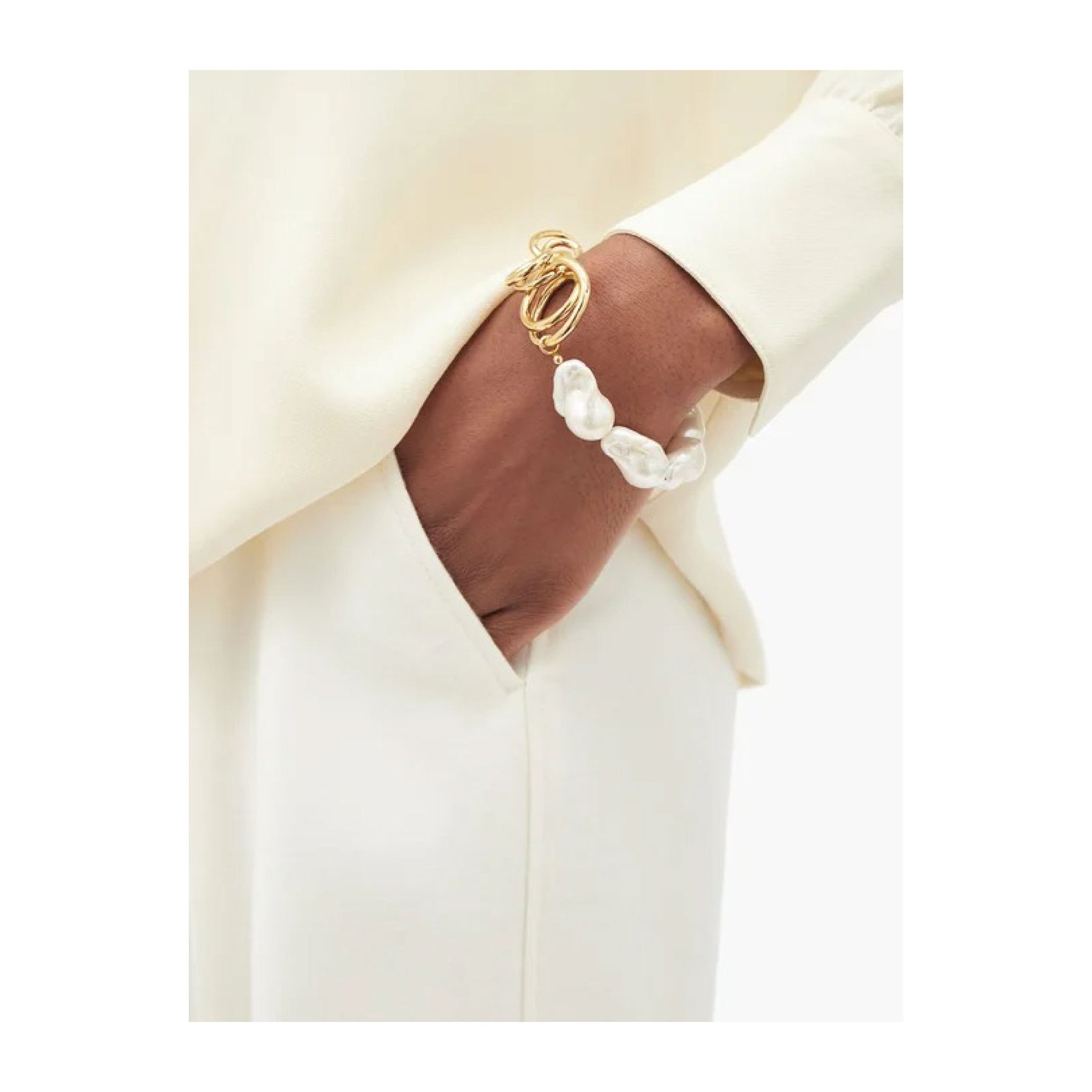 しなやかなゴールドループチェーンと、淡水バロックパールがエレガントに融合した「コンプリーテッドワークス(COMPLETEDWORKS)」のブレスレット。モダンで洗練された印象を放つ逸品は、何気ない日常をワンランクアップさせてくれる頼もしい存在です。