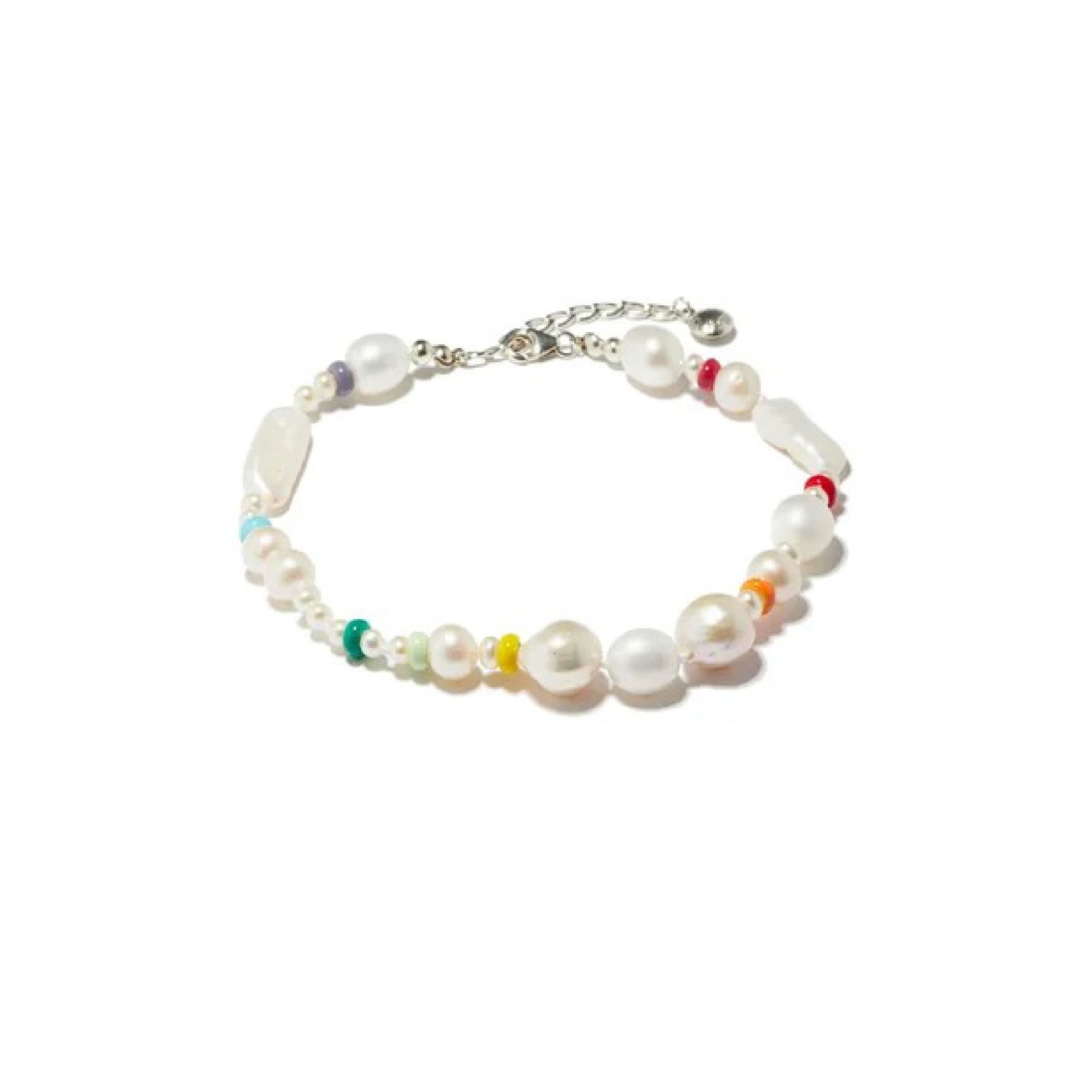 鮮やかなユニコーン レインボーの色合いが印象的な、「フライ パワーズ(FRY POWERS)」のアンクレット。爽やかなビーチに映えるような、明るくポップな色合いが魅力的。身に着けると足取りが軽くなるような、ハッピーオーラ溢れるパールアクセサリーです。