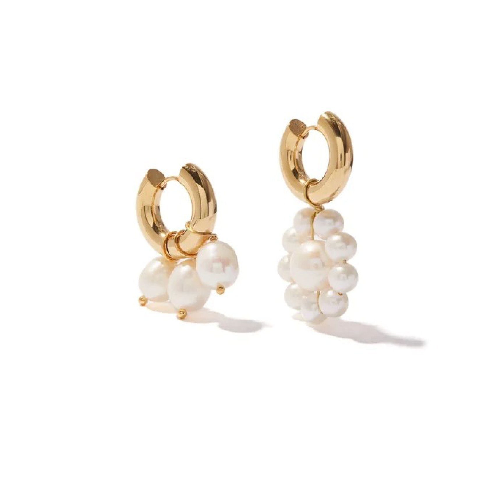 たわわに実った果実のような、大小さまざまなパールで構築された「タイムレス パーリー」のヒンジ式ピアス。表情を明るく照らす、ミスマッチデザインのパールで神秘的な美しさを手に入れて。