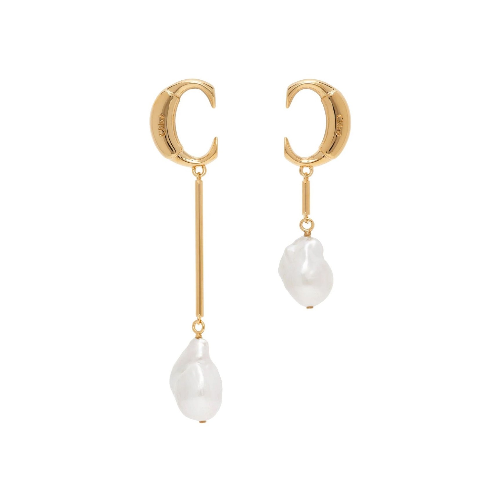 「クロエ(Chloé)」のバロックパールを採用したピアスは、三日月のようなイニシャルCのボリューム感と、左右非対称のドロップで洗練された印象に。デイリースタイルに華を添えます。