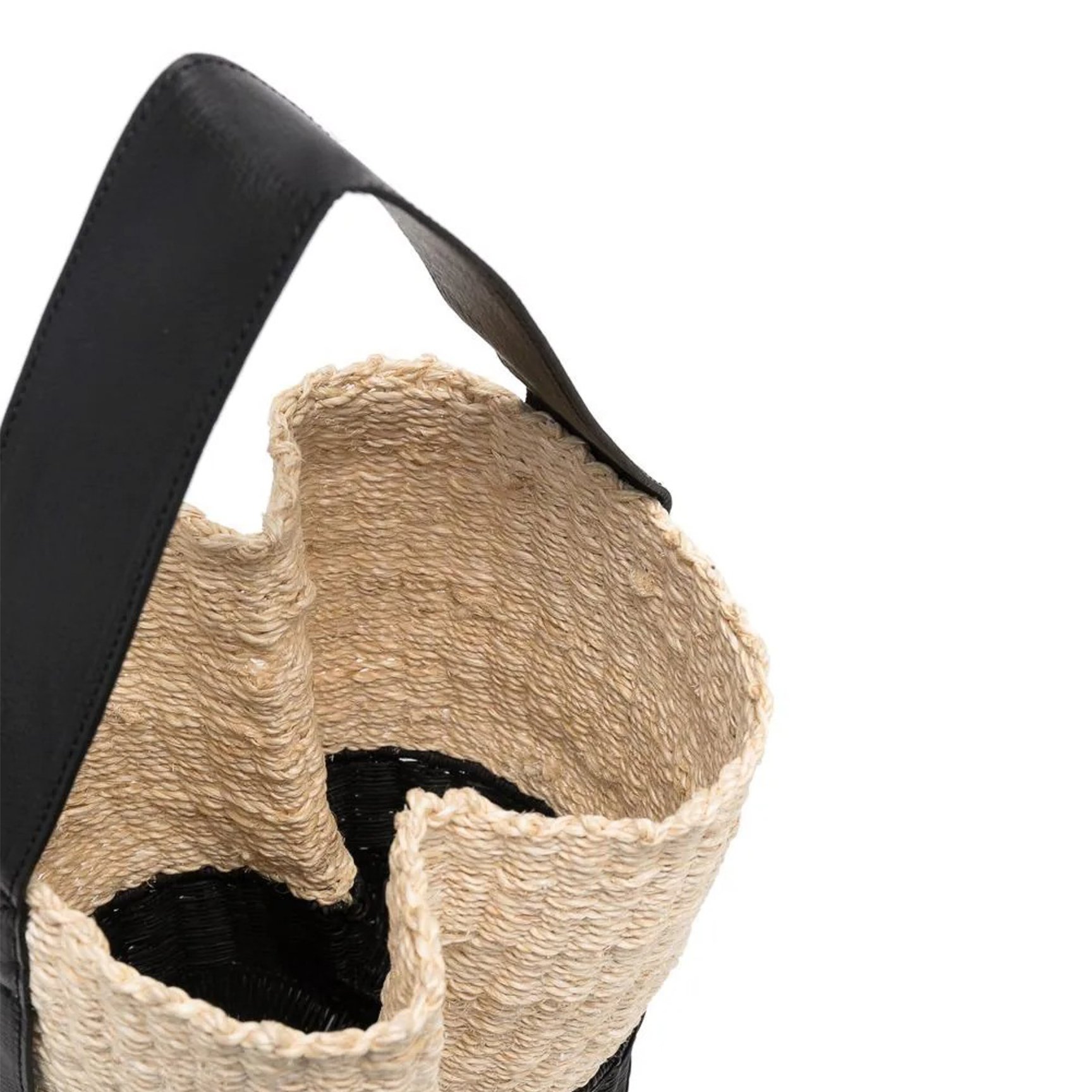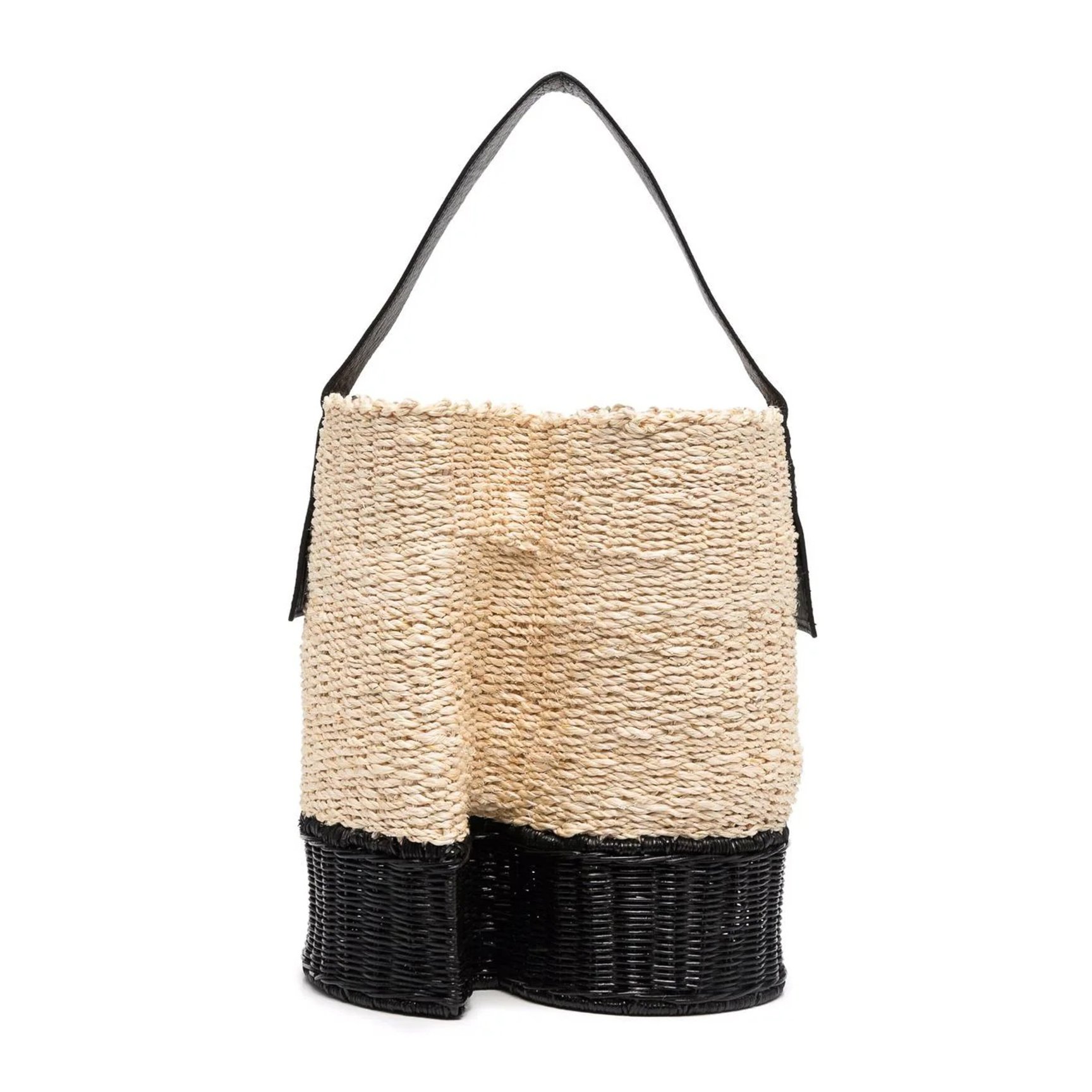小物からドリンクボトルまで、必需品を収納できるハンドバッグ。デイリーで楽しめる「サカイ(sacai)」のラフィアバッグは、アーティスティックなフォルムにシックなブラックのカラーパターンが無二の存在感を放ちます。ふたつの空間に分かれた湾曲したコンパートメントで、使い勝手とデザイン性を底上げ。