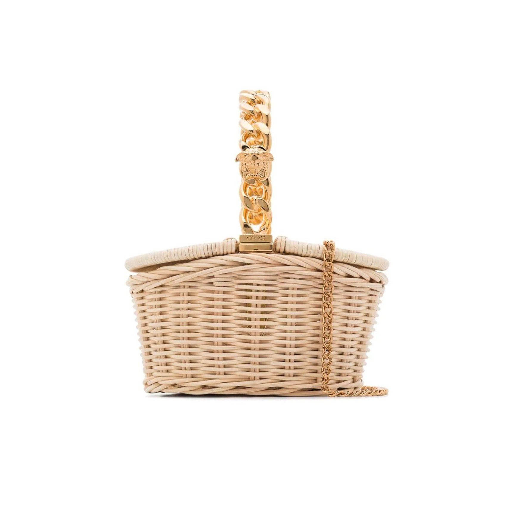ゴージャスなゴールドのハードウェアと、メデューサのロマンティックな眼差しに魅了される「ヴェルサーチェ(VERSACE)」のかごバッグ。ピクニックバッグが小さく生まれ変わったような遊び心あるデザインと、ジュエリーのような煌めきに心奪われます。超ミニサイズのころんとした存在感に、視線を集中させて。