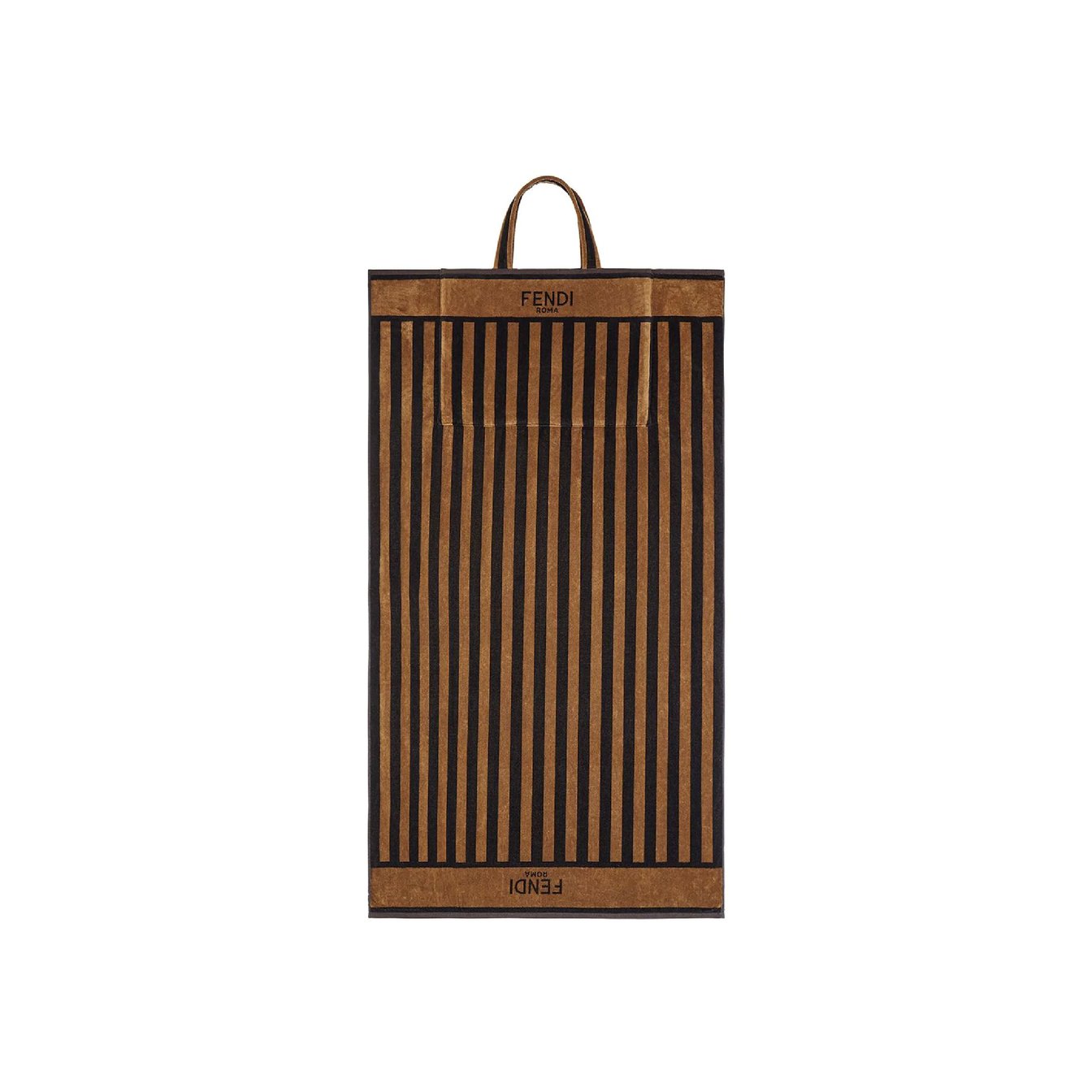 折りたたんで収納すればバッグのように持ち歩ける取っ手付きのタオルは「フェンディ(FENDI)」。茶色とブラックのアイコニックなストライプ柄でラグジュアリーな気分を一気に盛り上げてくれます。