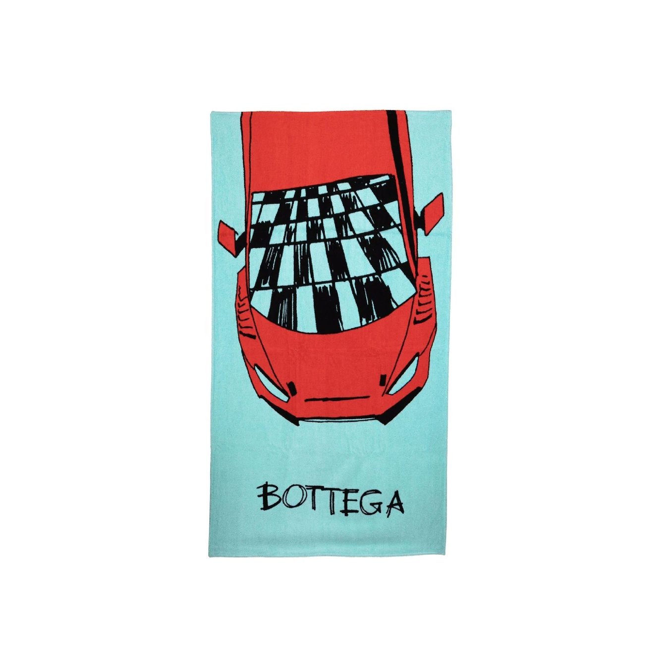 スポーツカーのグラフィックがプリントされた個性的なビーチタオルは「ボッテガヴェネタ(BOTTEGA VENETA)」。遊び心溢れるアイテムを最高の休日のお供に。ユニセックスで使えるデザインもポイントです。