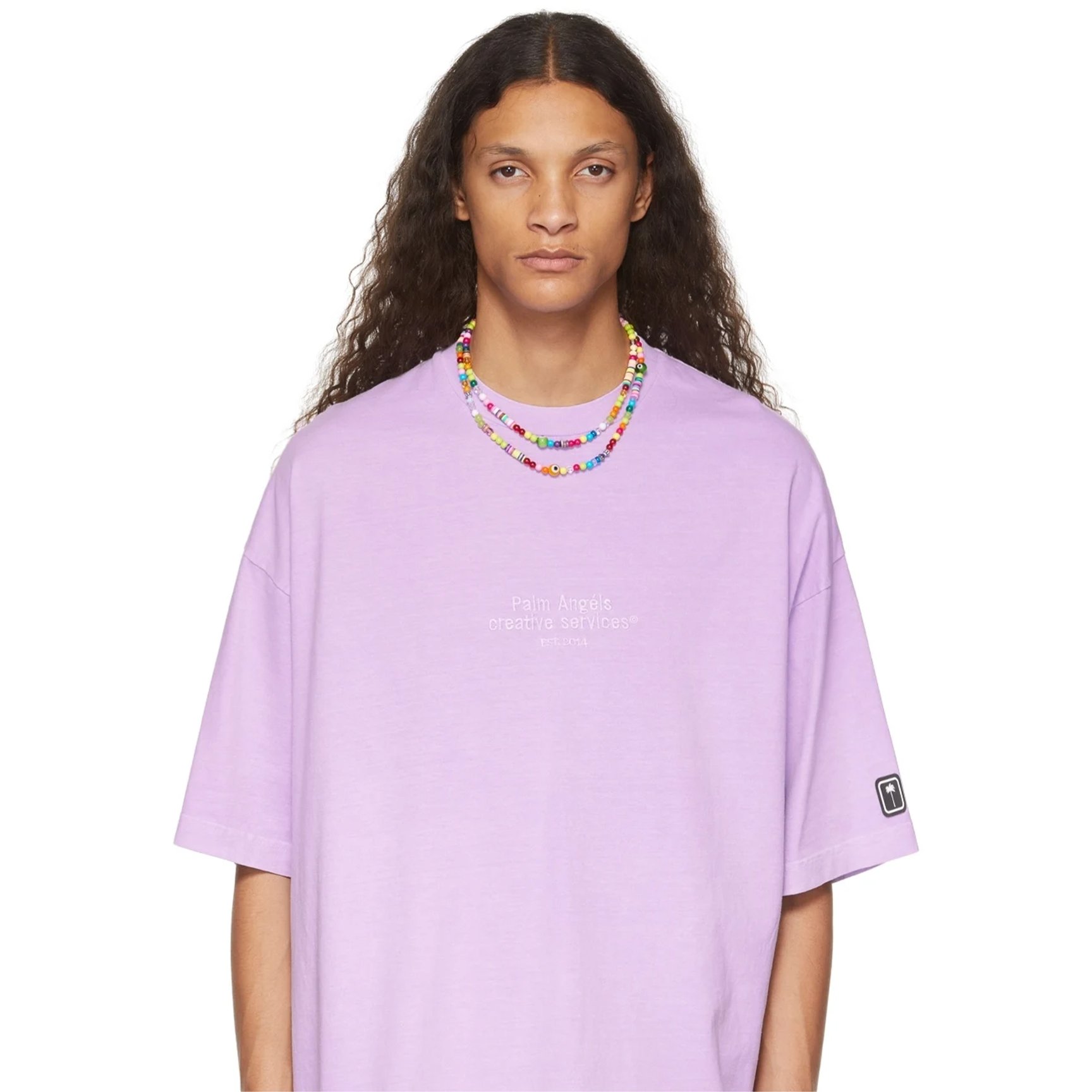 マルチカラーでビーズらしさたっぷりのネックレスは、ユニセックスのレディトゥウェアブランド「パーム エンジェルス(PALM ANGELS)」のもの。ロサンゼルスのスケートカルチャーが持つ洗練された逞しさを取り込んだ、ポップかつストリートなアイテムです。ゴールドの椰子の木のチャーム、そして様々な形のビーズが首元を印象的に飾ります。