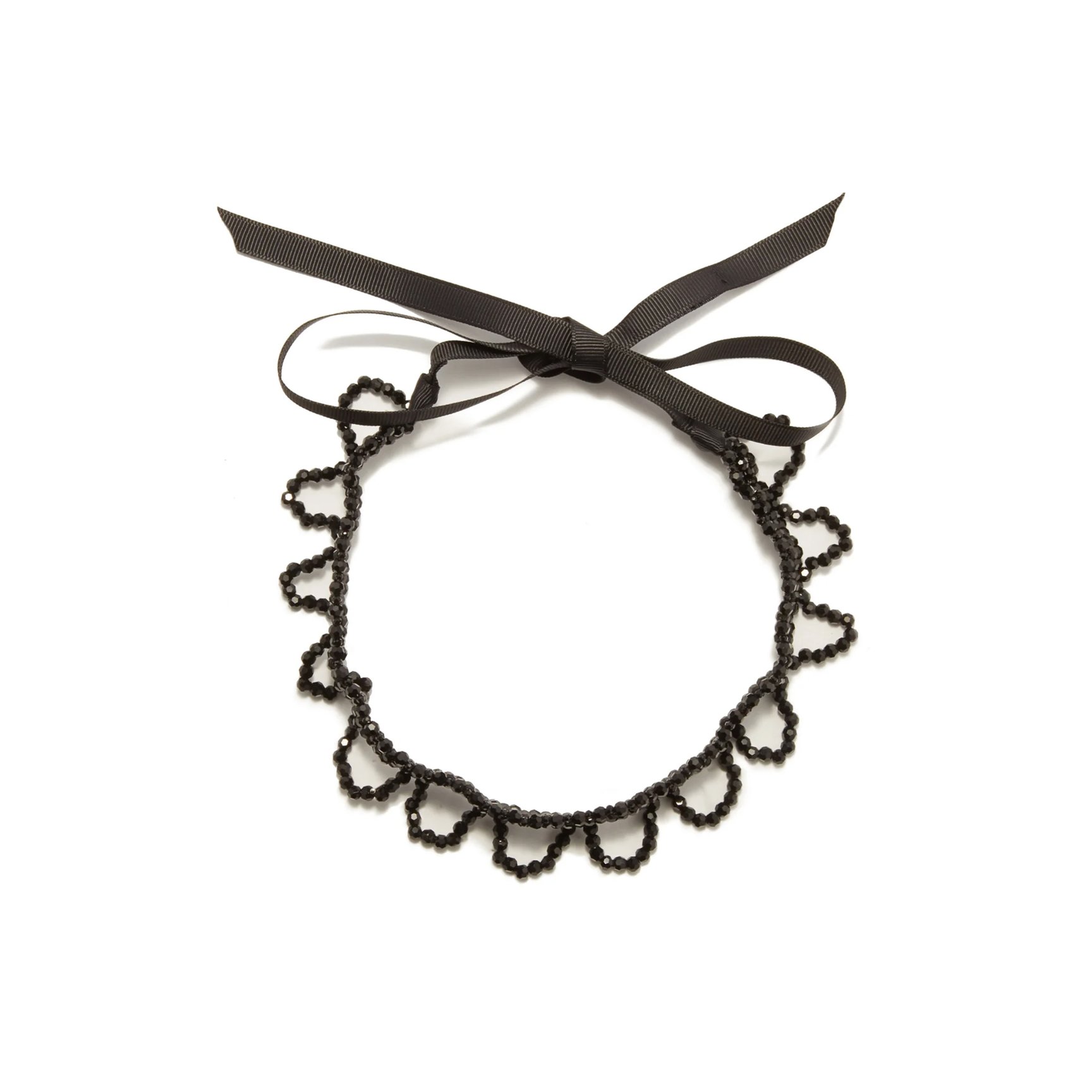 ビーズネックレスといえば、多くの人はマルチカラーのポップなものをイメージするかも?一風変わったこちらのアイテムは、「シュリンプス(SHRIMPS )」から登場するロマンチックなムード漂うチョーカーネックレス。控えめな輝きを滲ませるファセットガラスビーズが絶妙な輝きを放ち、首元はグログランリボンでプレイフルなペタル風シェイプに仕上げられています。