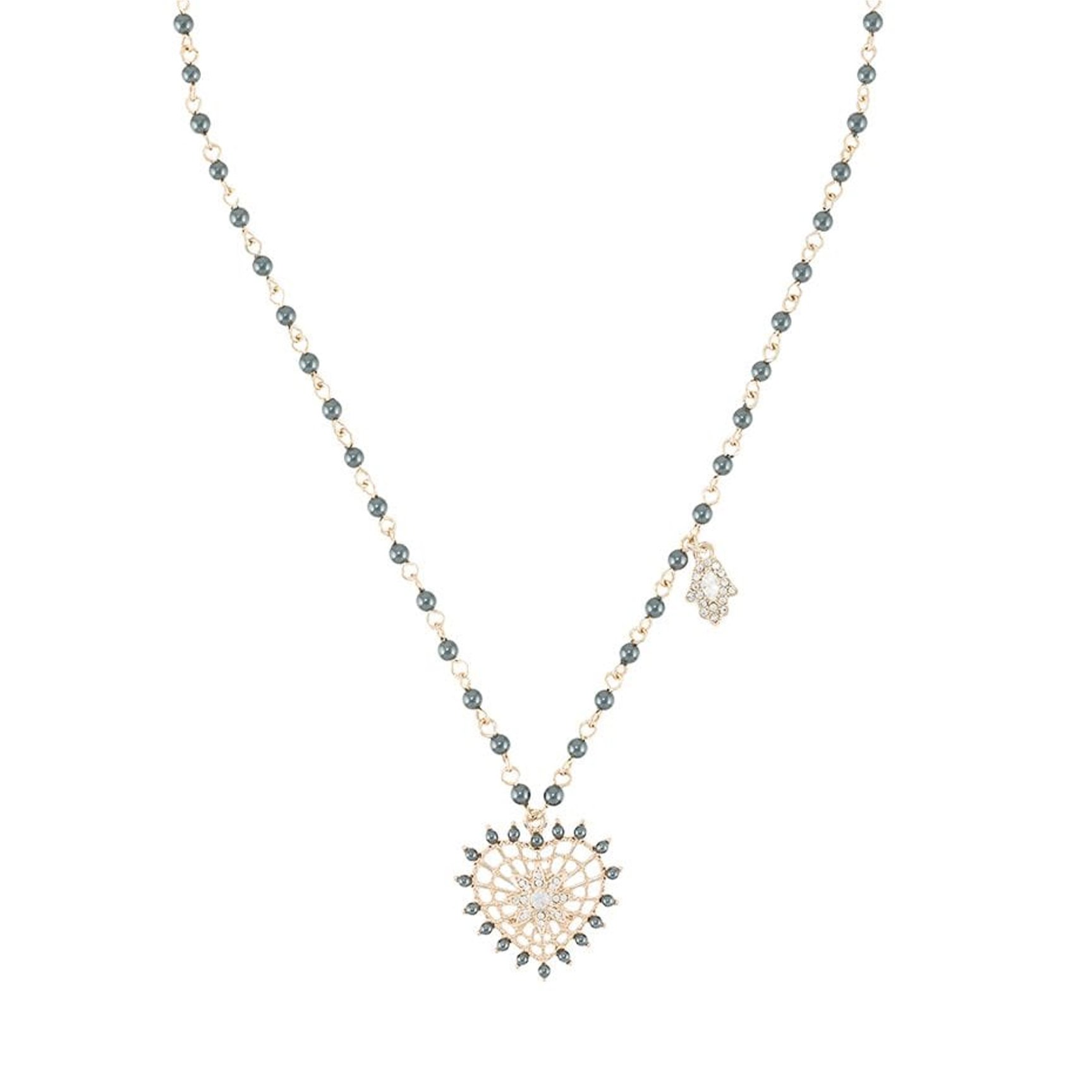 タイムレスでエレガントなデザインを得意とする「マルケッサ・ノッテ(Marchesa Notte)」から登場するビーズネックレス。パールに近いビーズディテールとクリスタル装飾が女性らしさたっぷり。大きめのハートモチーフが胸元に存在感を放ちます。