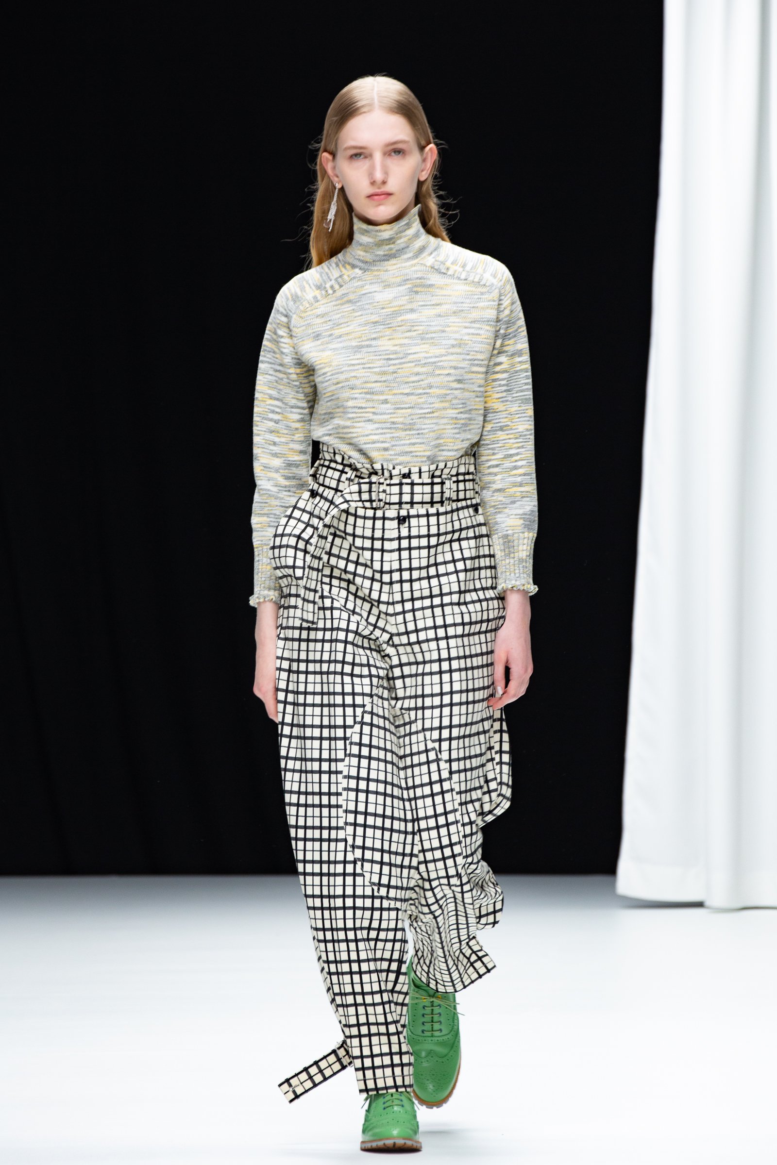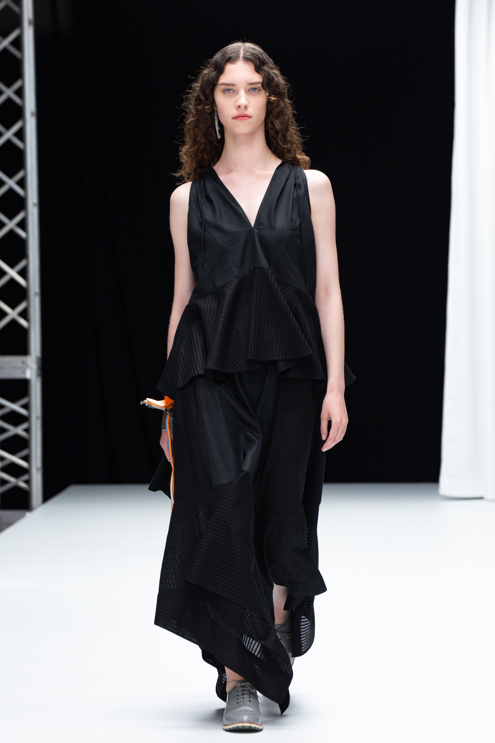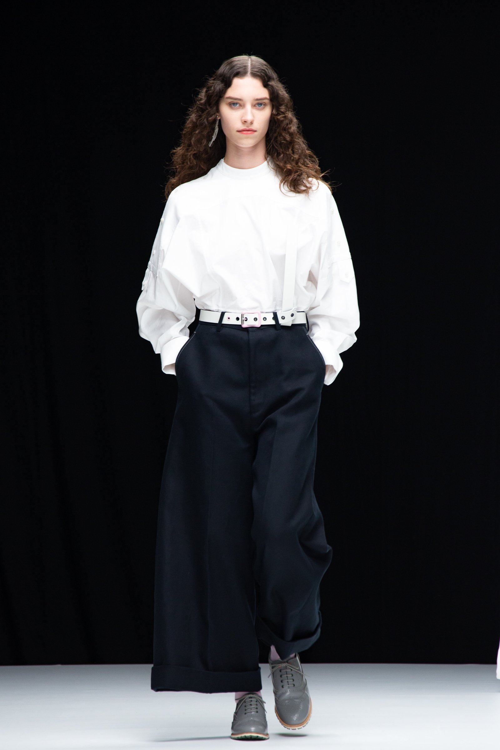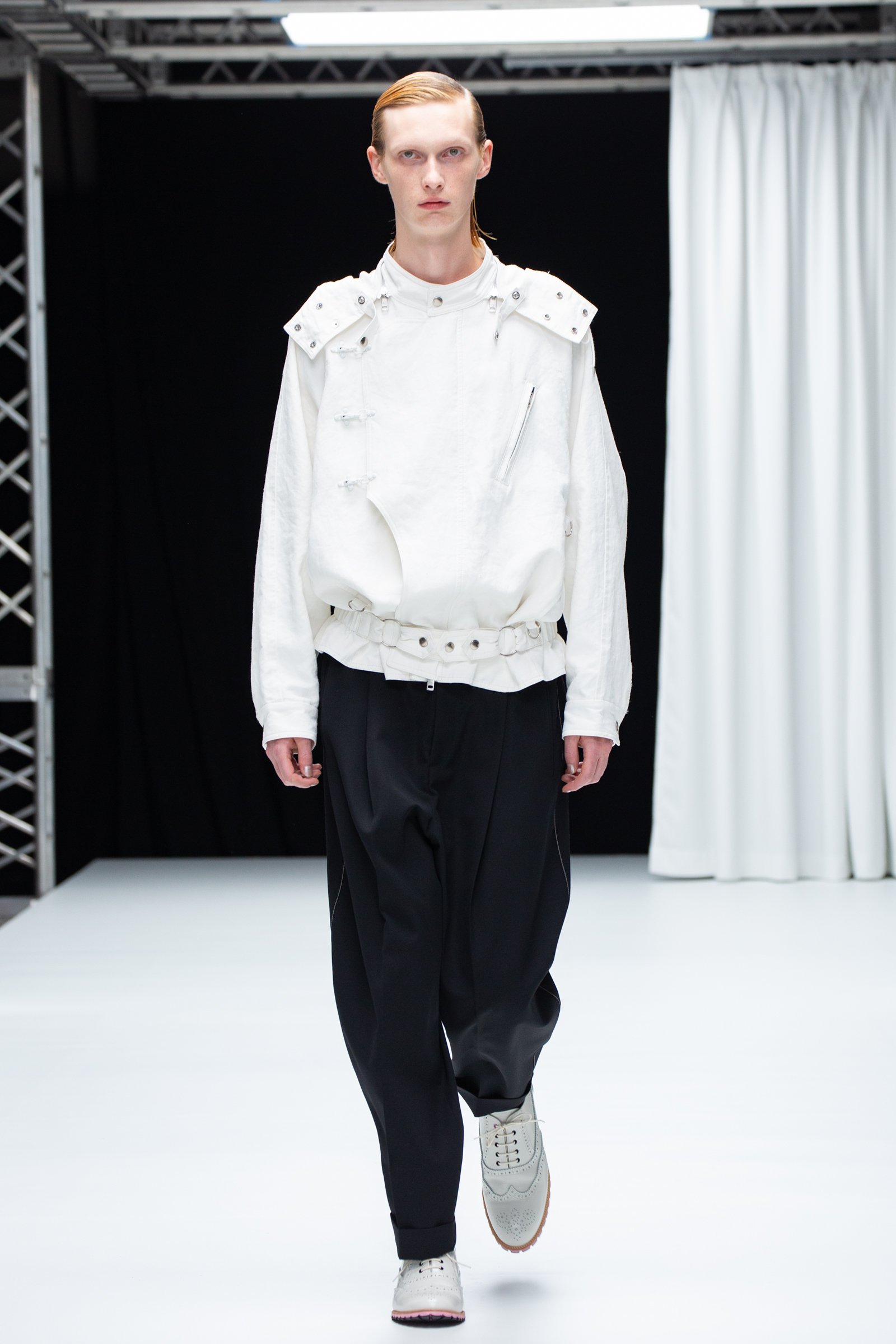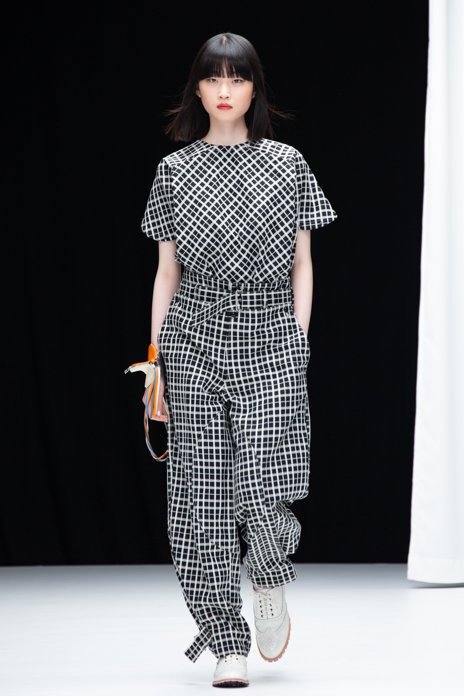 会場は、ミース・ファン・デル・ローエが手掛けたファンズワース邸を表現し、白いカーテンを開けるシーンでショーは幕を開ける。中盤ではランウェイ上で着用アイテムの上下を変えて着替える演出を行い、テクニックを駆使したアイテムでも日常使いに適した様を感じさせた。